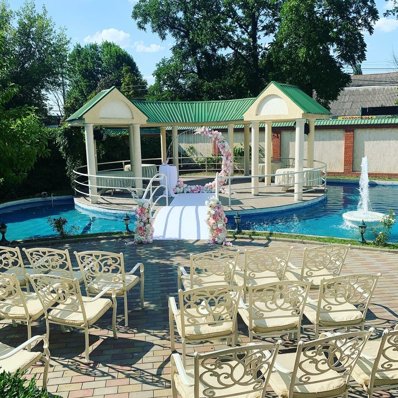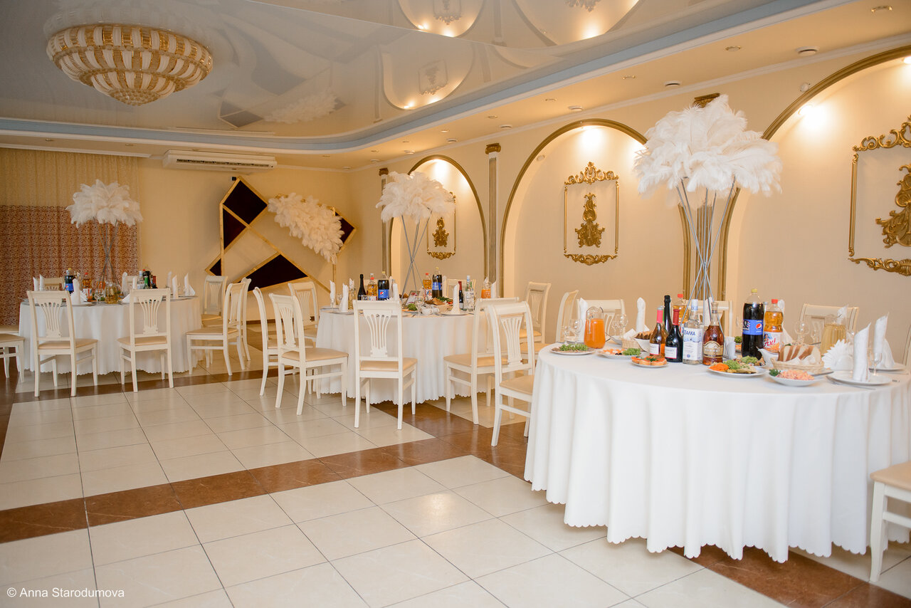 Была на свадьбе у подруги,банкетный зал большой ,красивый.Персонал вежливый ,внимательный. Еда очеееееень вкусная!!! Во дворе тоже красивенько оформлено