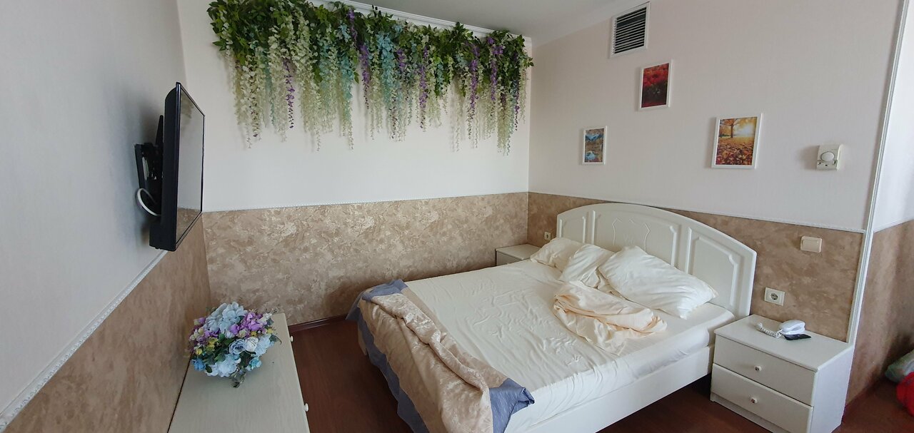 Из плюсов Чисто, в номере было 2 телевизора и вайфай свой в номере Из минусов Был сломан раскладной диван Было холодно, даже с включённым на максимум отоплением в номере Не работало джакузи, так что толку как от обычного душа
