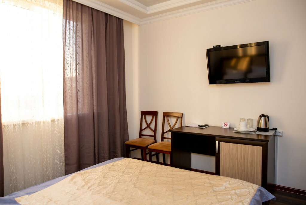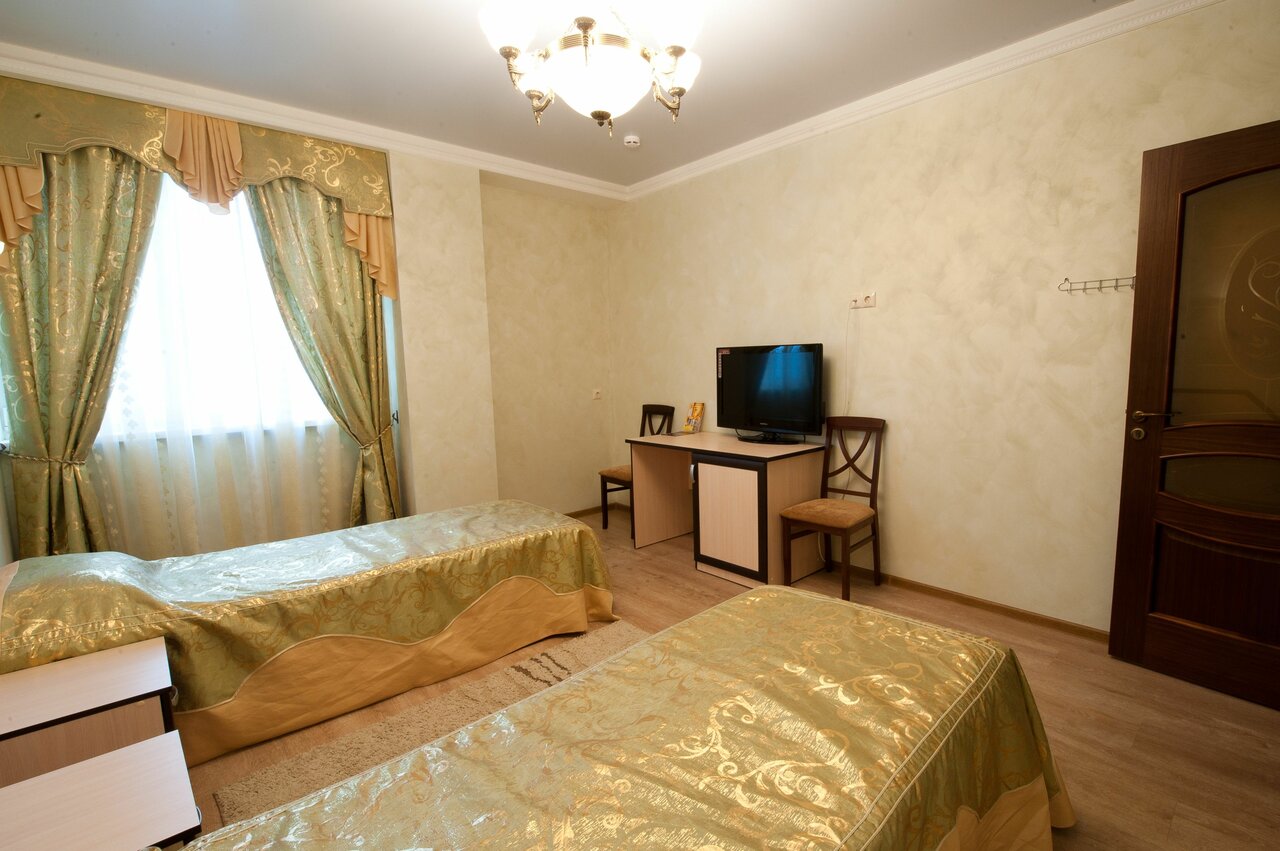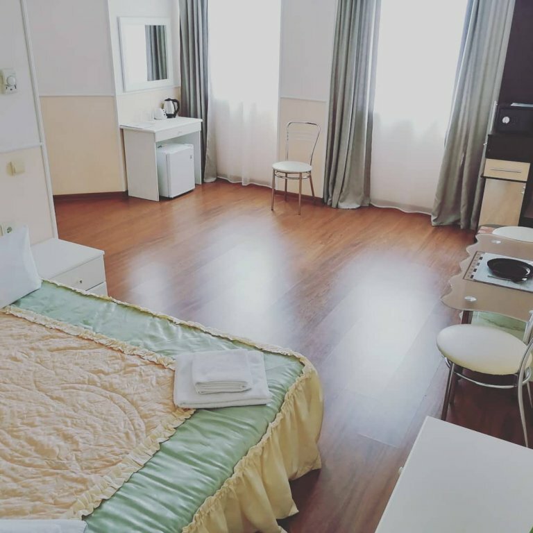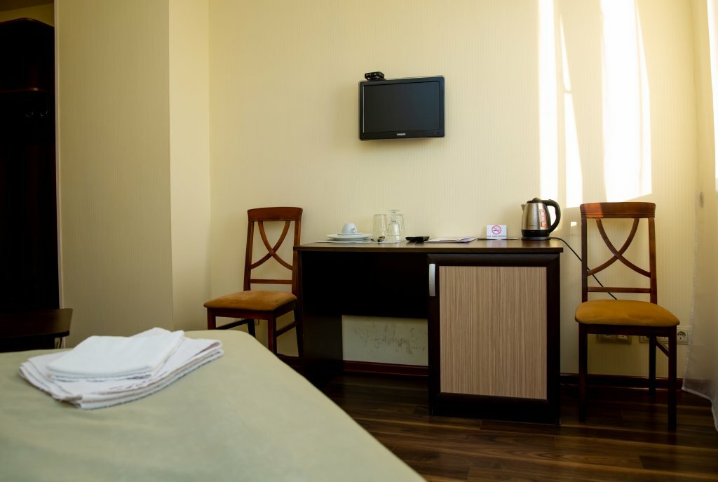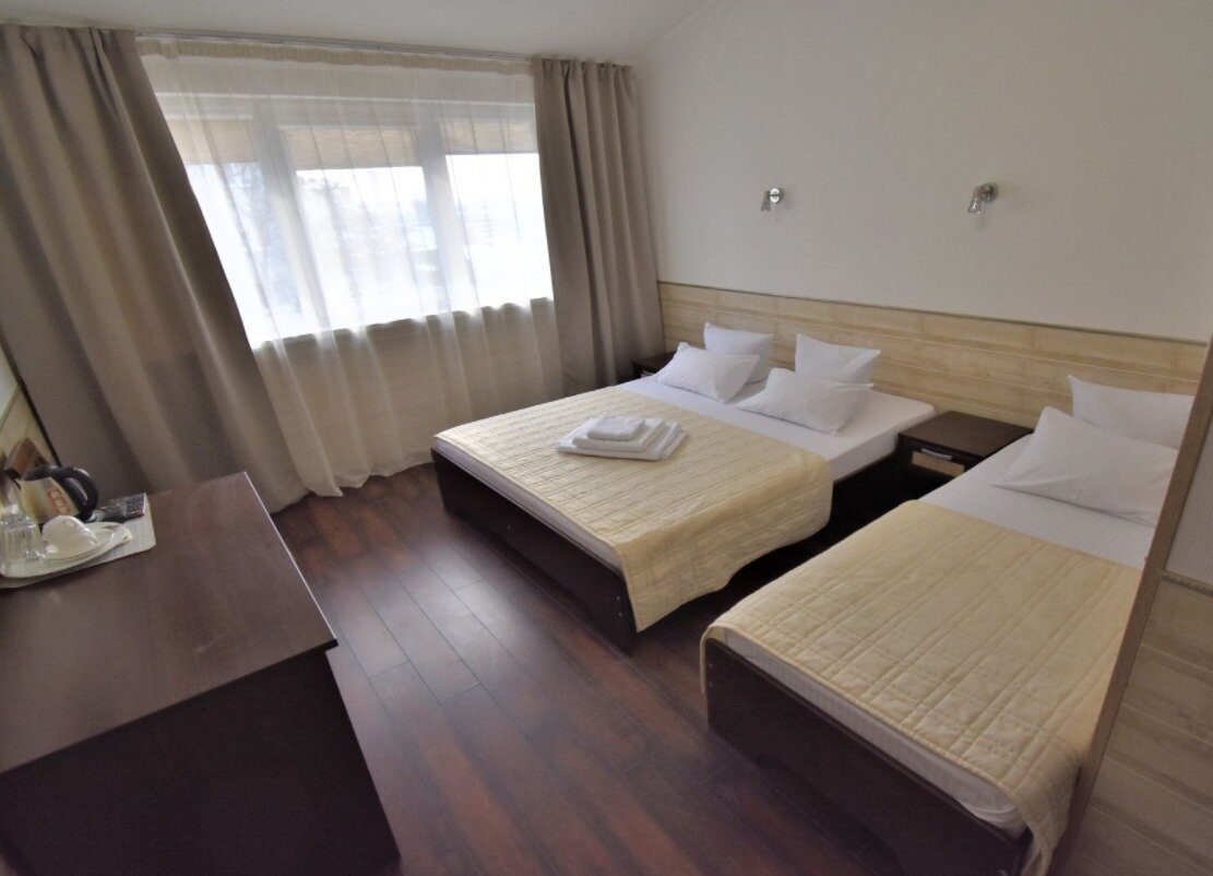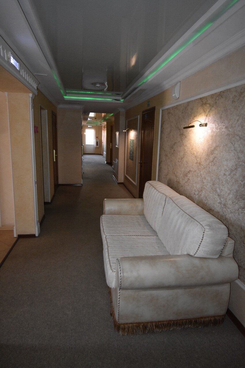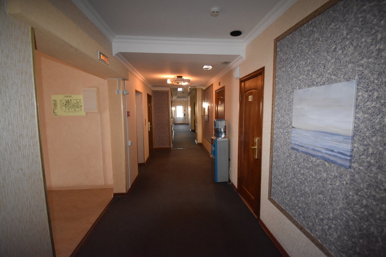Жили в данной гостинице, в общем и целом нормально, но не более того. Когда заселились, сразу же пошли в душ (дорога была долгая), после 3-5 мин из горячей воды пошла холодная, из раковины пошла ржавая вода, сказали что какие то ремонтные работы проводятся, кое как удалось принять душ. В самом номере был мини холодильник от которого разило чесноком), были два стакана, 3-4 вешалки, и по 2 одноразовых геля для душа с шампунем, на этом все…, а нет, у моих коллег был либо шкаф либо ванная, у меня душ и все) Над дверью со стороны коридора весела колонка с ненавязчивой музыкой, ее вроде отключали на ночной период времени, но когда ты засыпаешь ее слышно, когда просыпаешься ее тоже слышно, после первой ночи это дико бесило, полотенца меняли вовремя. Завтраки достаточно сытные, но у нас на выбор была яичница или каша, чай или кофе. Парковочных мест очень мало, не всегда удавалось парковаться у гостиницы