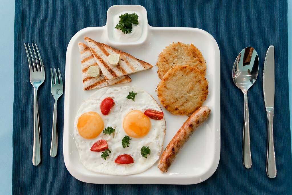 - Сытные завтраки (каша, омлет, тосты, чай).