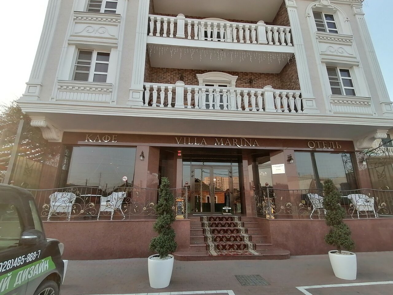 Контакты: — Сайт: villamarina-hotel.ru — Телефоны: +7 (861) 216-80-22 (администратор), +7 (861) 253-75-19 (бронирование).