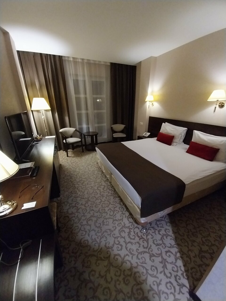 Хорошая гостиница. Чисто уютно. Роскошный мини-бар в номере. Кафе при гостинице, вкусно, разнообразно. Пять вариантов завтраков. По желанию еда подаётся в номер.