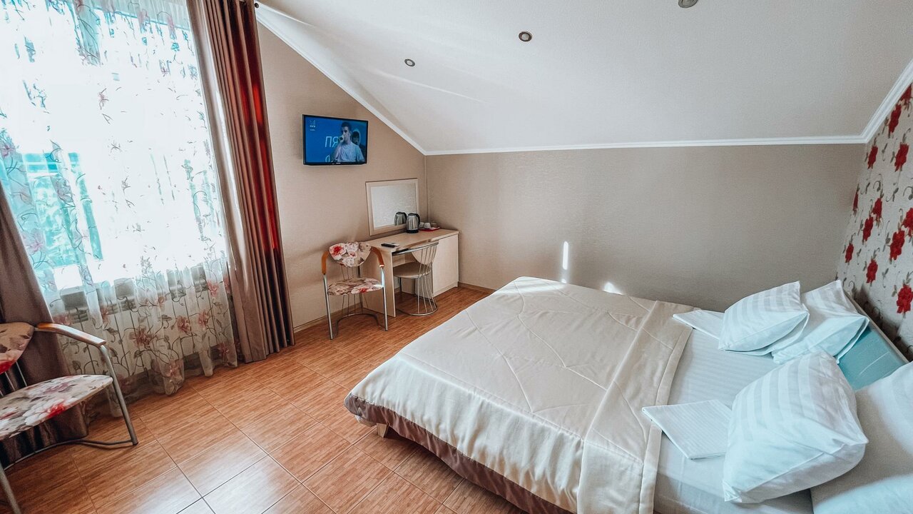 Номер находится на 2 мансардном этаже.В номере имеется кондиционер, собственная ванная комната с душем, биде и феном
