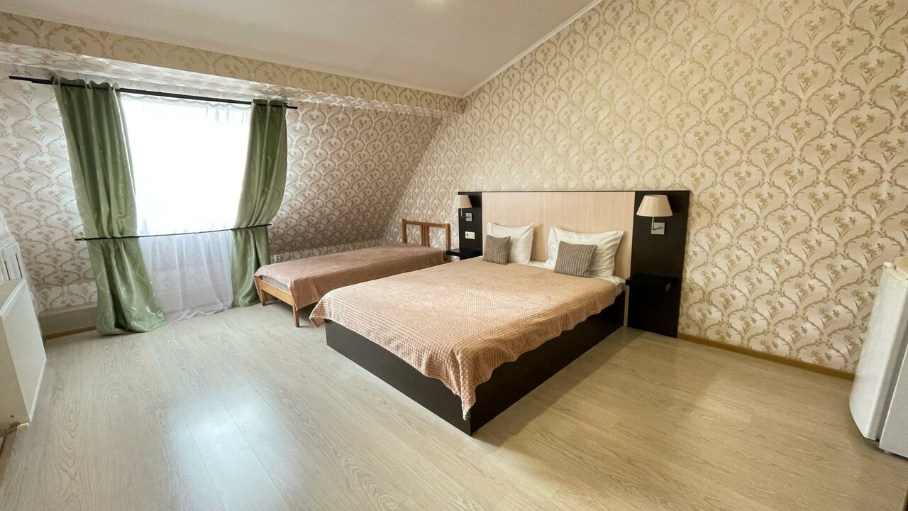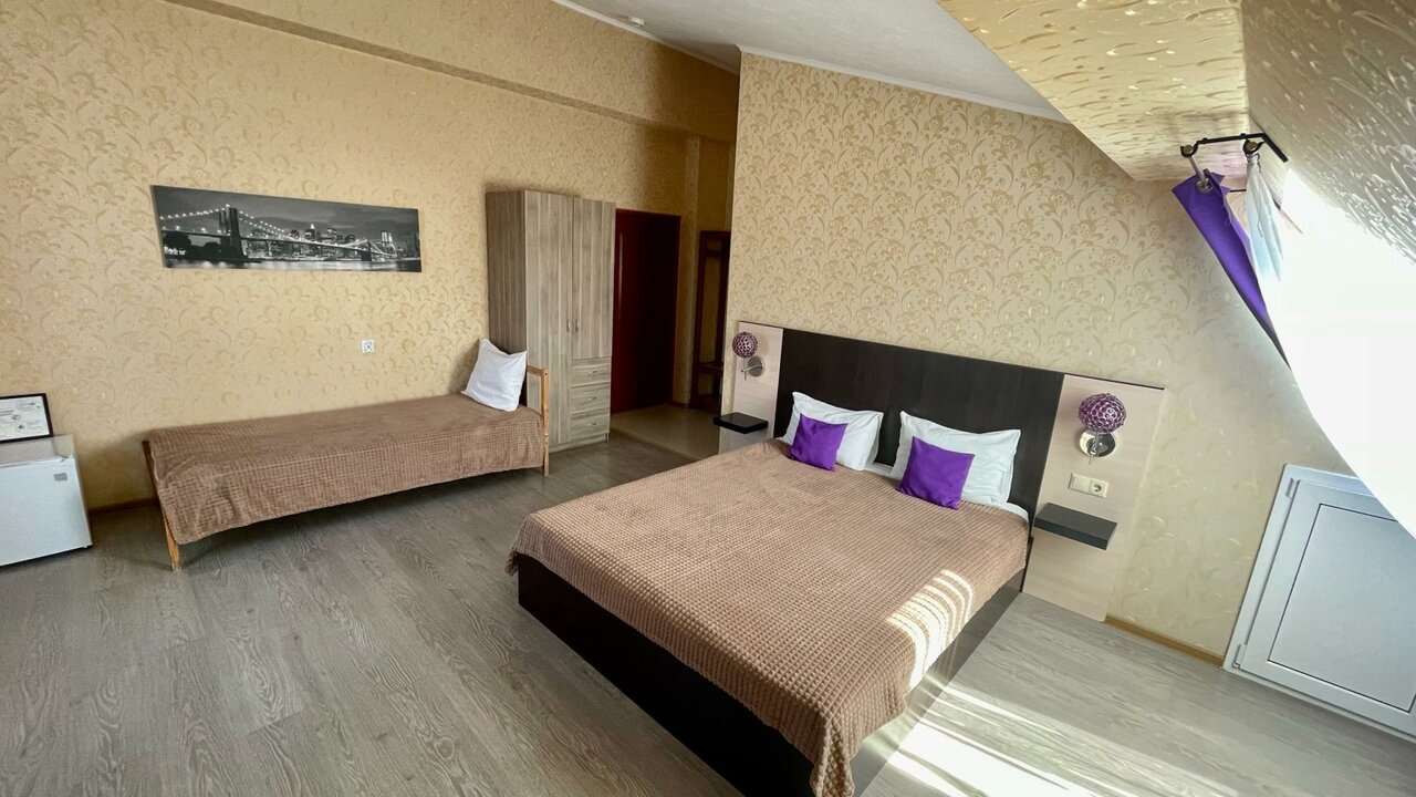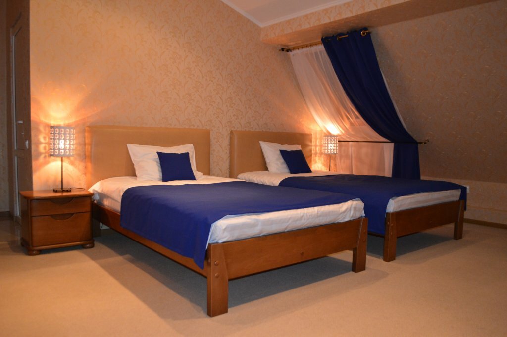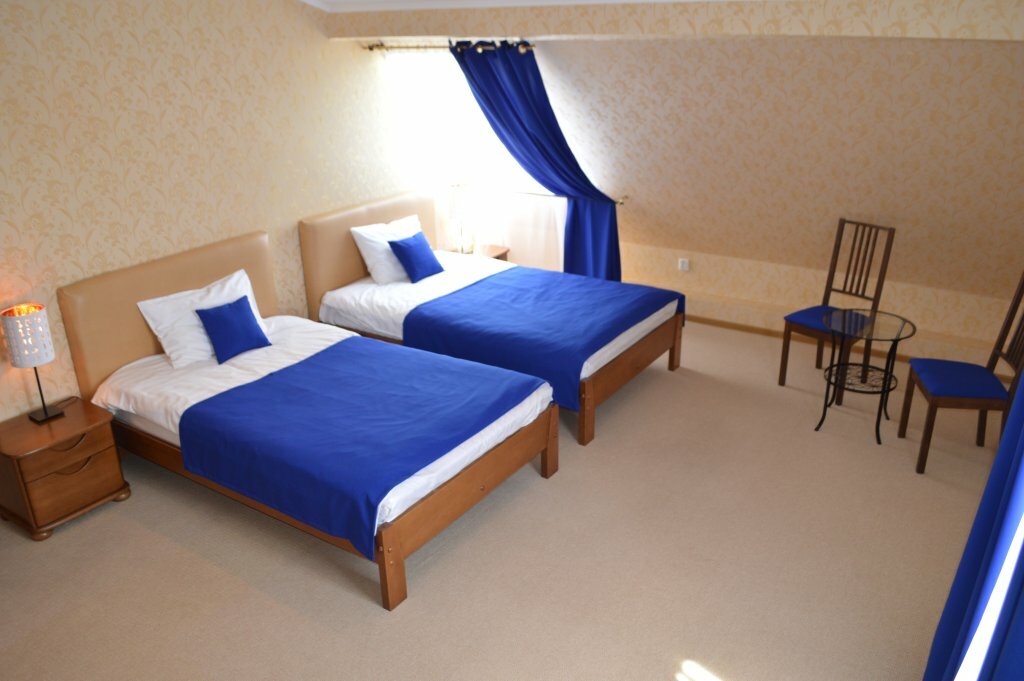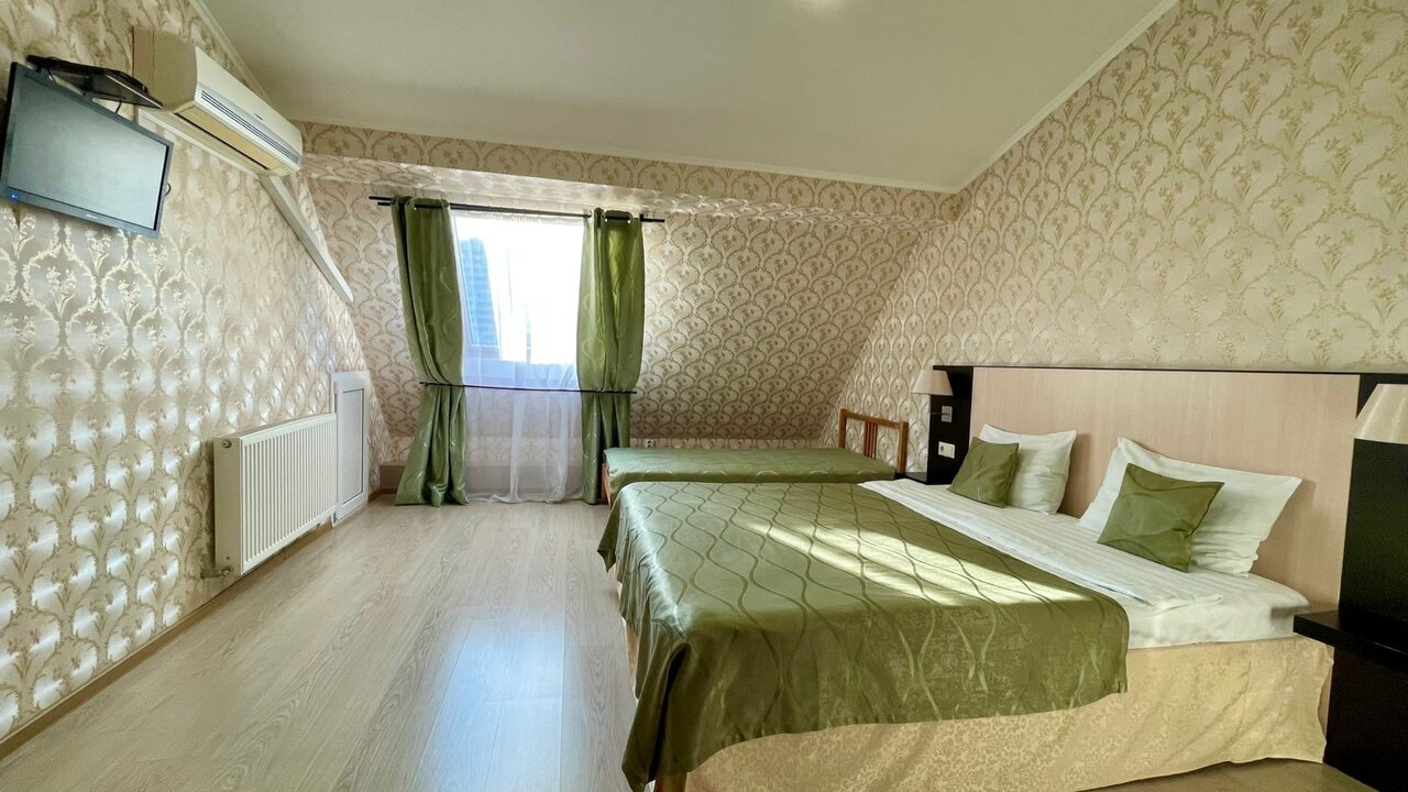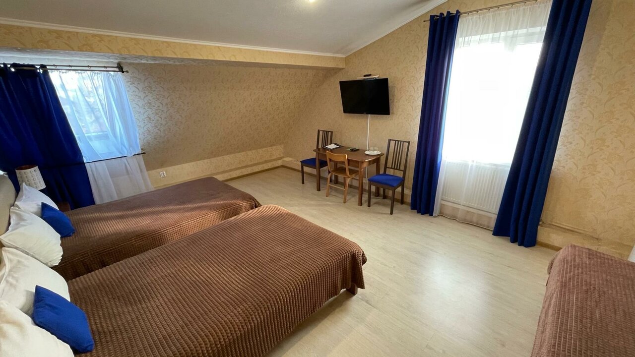 Номер 'Стандарт-Твин' с дополнительным местом. В номере расположены две полутора спальные и односпальная кровать, так же в номере есть все необходимое для комфортного проживания