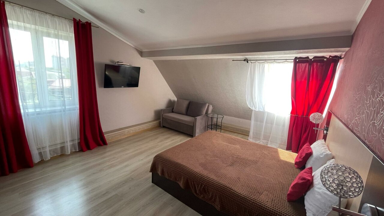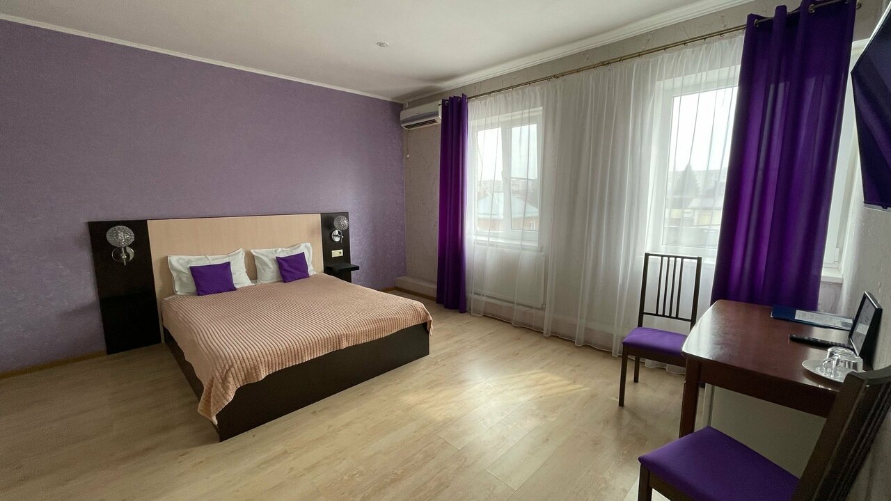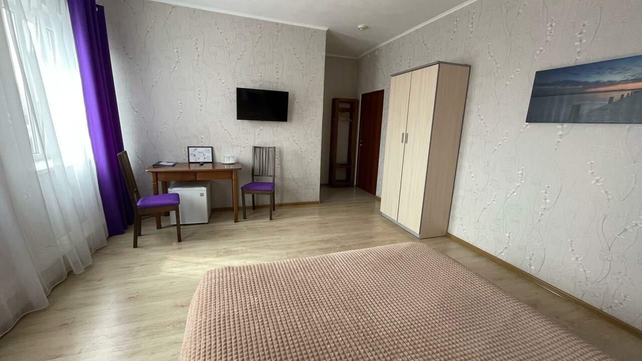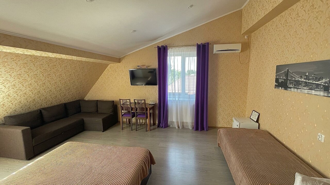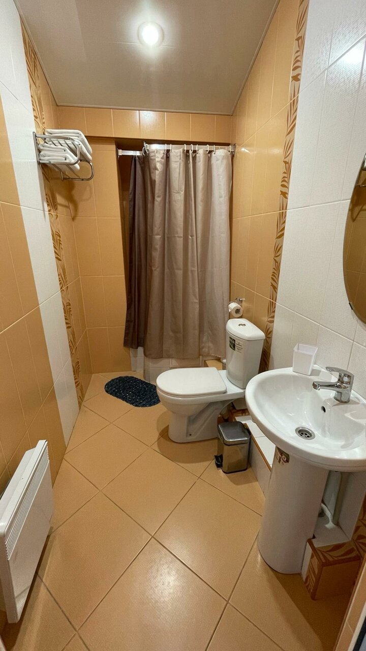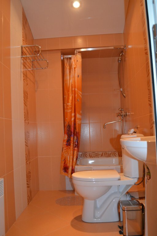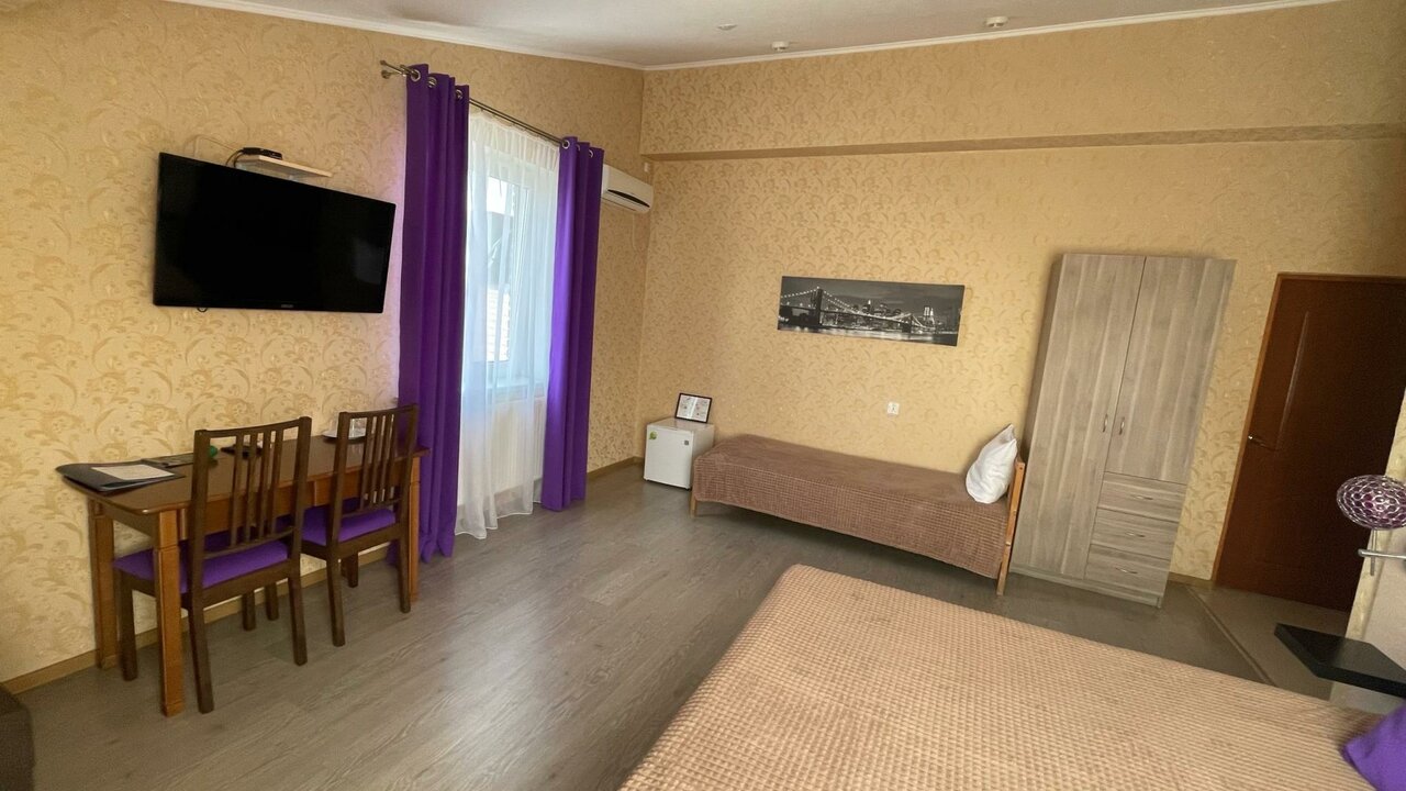 Хороший, недорогой отельчик с номерами разной комфортности. Сначала напугали запахи накуренности,но потом недобросовестные жильцы съехали и всё проветрилось. Номера чистые, просторные. Есть в номере холодильник ( средний величины), телевизор, сплит. Всё работало. В коридоре гладильная доска с утюгом, кулер, микроволновка и чайник. В наших номерах туалет и душ были на этаже. Мы бронировали на одну ночь. Ещё в наше проживание входил завтрак (на выбор 4 варианта). Его принесли в номер. сытно. мы его,правда,дополнили персиками. Персонал очень отзывчивый, за это отдельное спасибо девочкам!!!