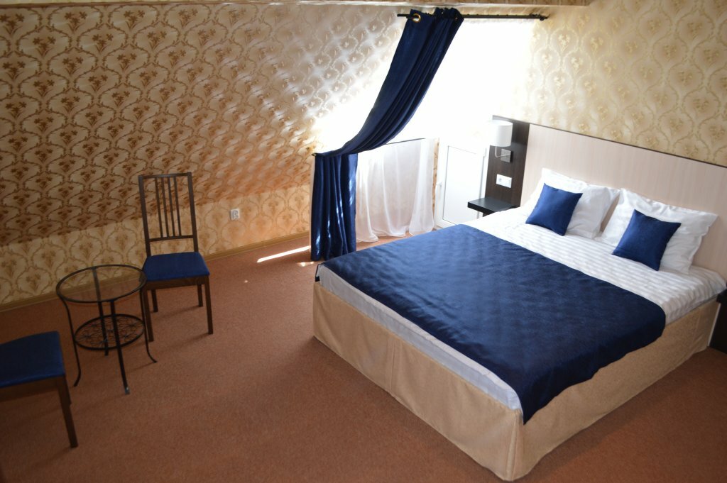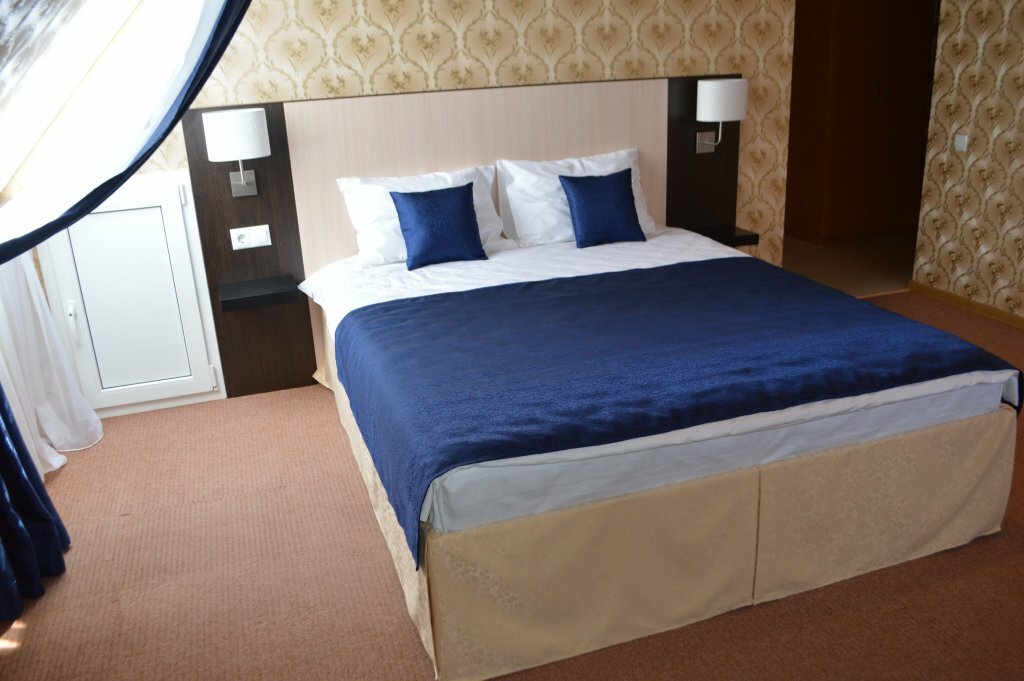 Номер 'Стандарт улучшенный' с широкой двуспальной кроватью и всем необходимым для комфортного проживания