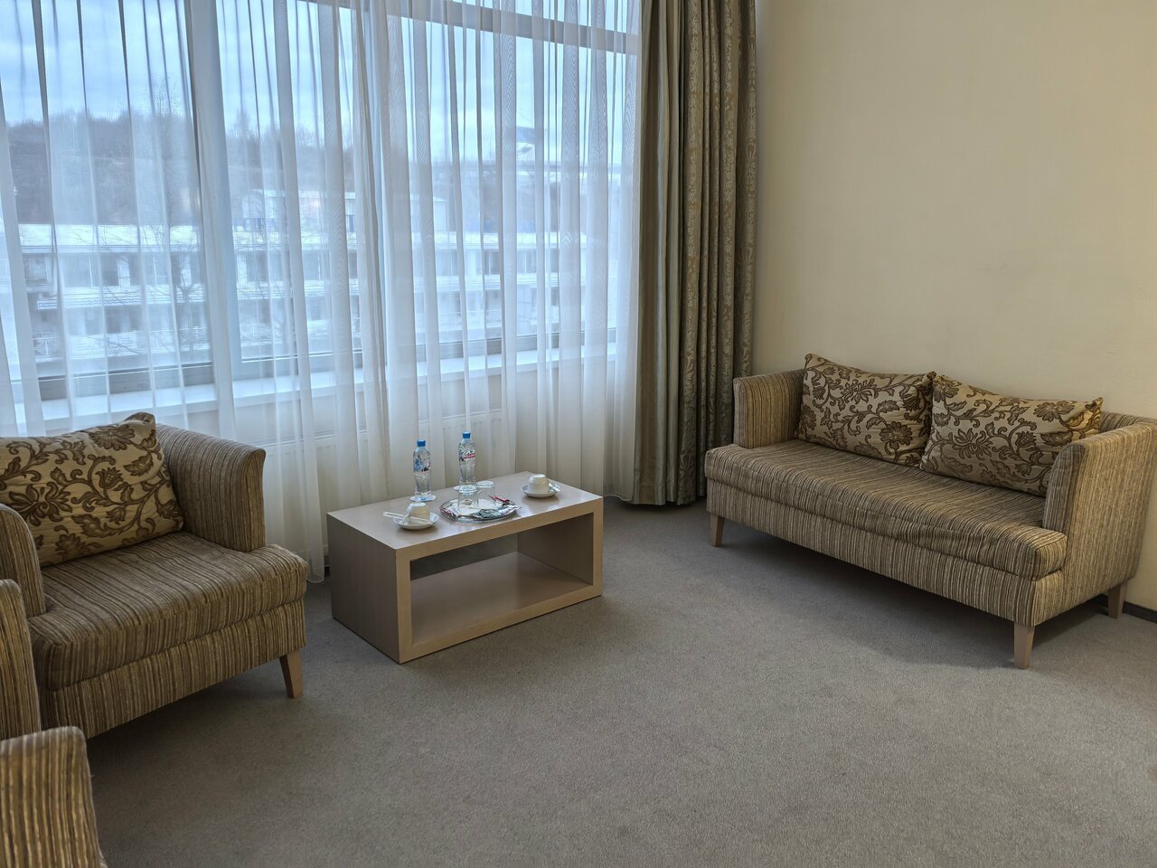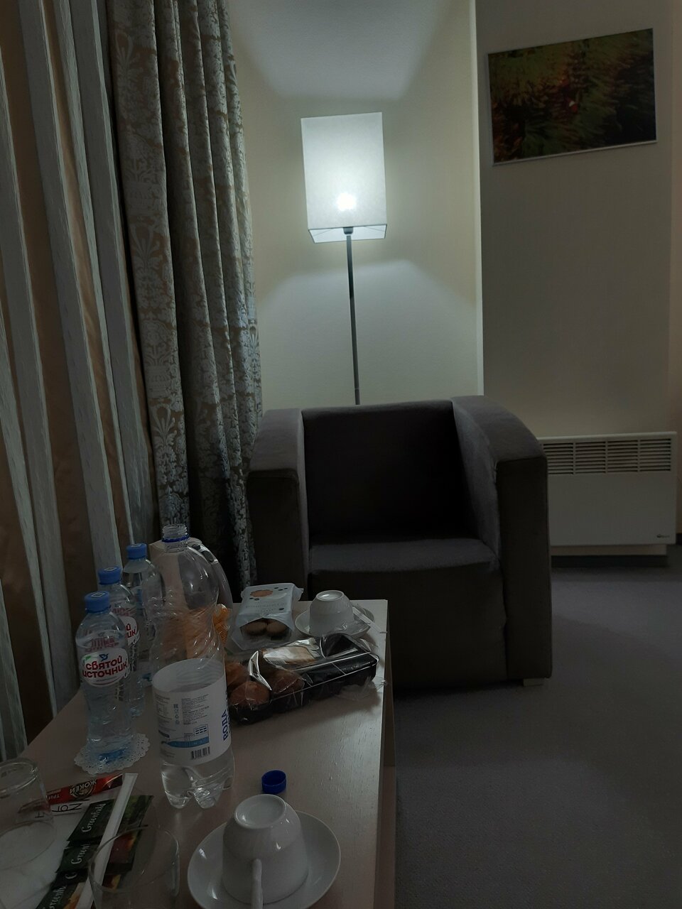 Шумоизоляция отсутствует, завтраки скудные и однообразные, интерьер и обстановка номера не соответствует его стоимости (14000 в сутки за студию в трехзвездочной гостинице за МКАД с древним как сама Русь телевизором размером экрана 30*30, без преувеличений!)), плюс отеля — нахождение его в одном здании с концертным залом и метро нивелируется тем, что проход из концертного зала в отель перекрывается в 23.00 вне зависимости от продолжительности концерта, а проход из метро так и вообще в 21.00 и приходиться идти полчаса через улицу… Проще и дешевле остановиться в центре Москвы и приехать на концерт на такси или на метро…