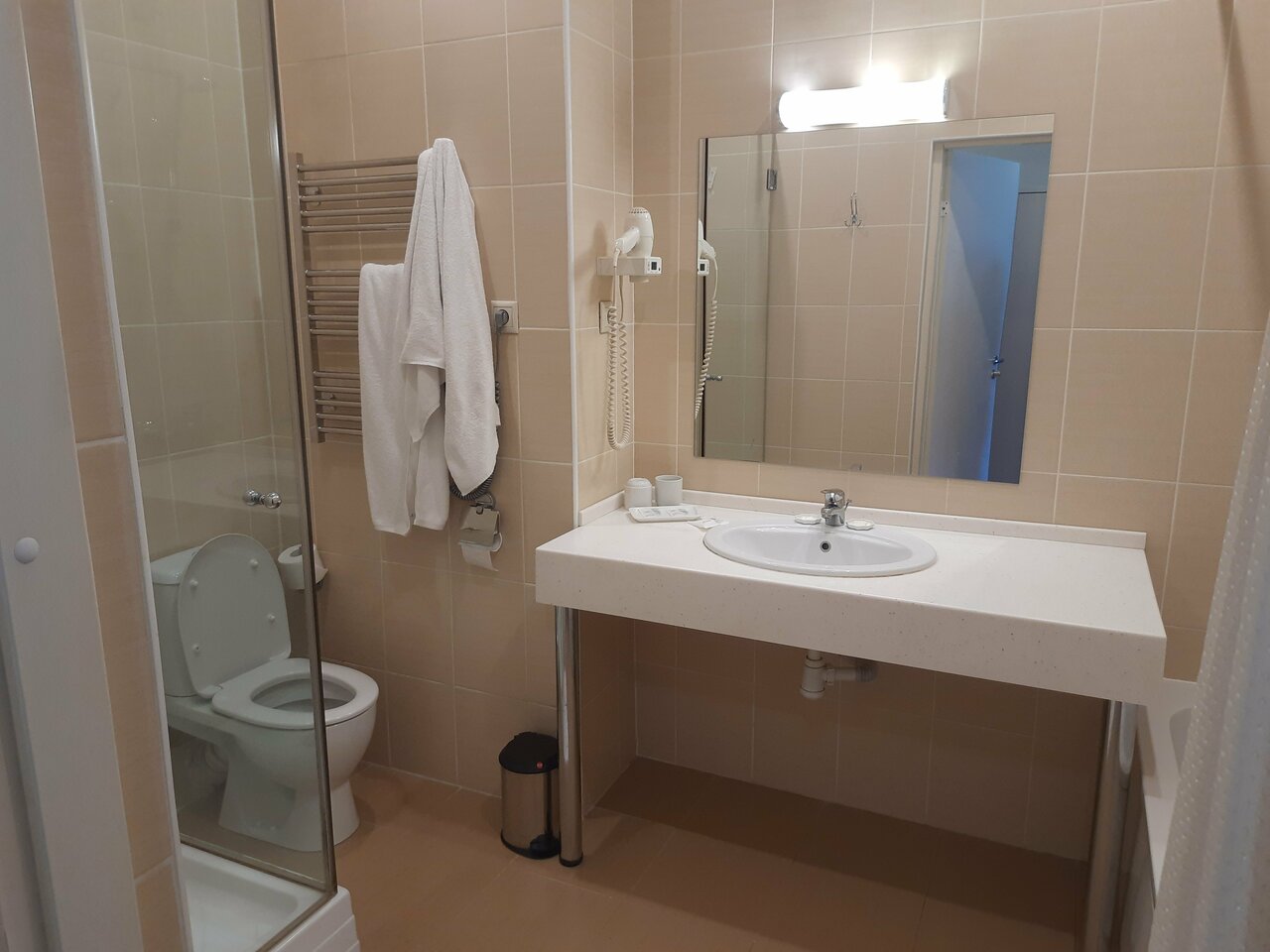 Близко с концертный залом Крокус — это главный плюс. Номера уставшие. Матрац и подушки удобные, ванная чистая, после ремонта видно. Ковролин очень потертый, как и стены и мебель. Звукоизоляция плохая. Соседи громко говорили, слышно каждое слово. Бируши не помогли. Завтрак на троечку. Каша, сырники, оладьи, творог. В номере тапочки, одноразовый набор зубной пасты и щётки, гель, шампунь.