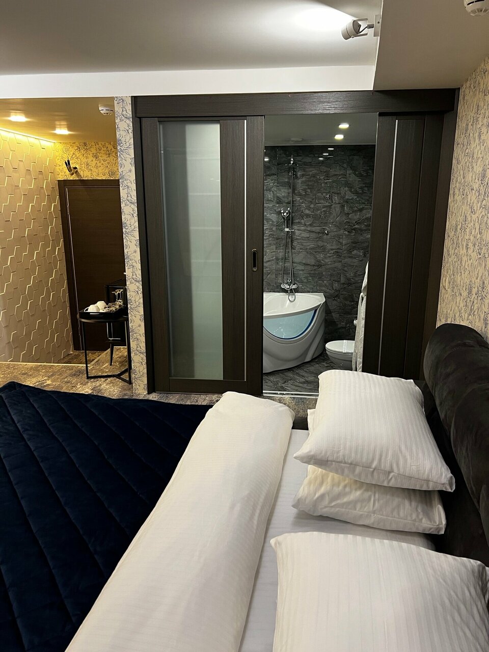 Номер ЛЮКС 1. Очень даже уютно и чистенько. Но джакузи совсем не джакузи, просто ванная в виде джакузи. Джакузи протекает. Убили одного жука. Отелем сложно назвать, скорее гостиница.