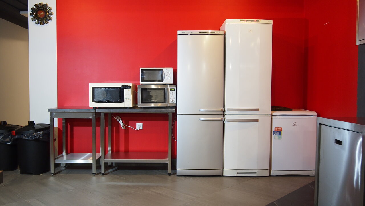 - Большой ассортимент посуды и кухонной техники (плиты, микроволновки).