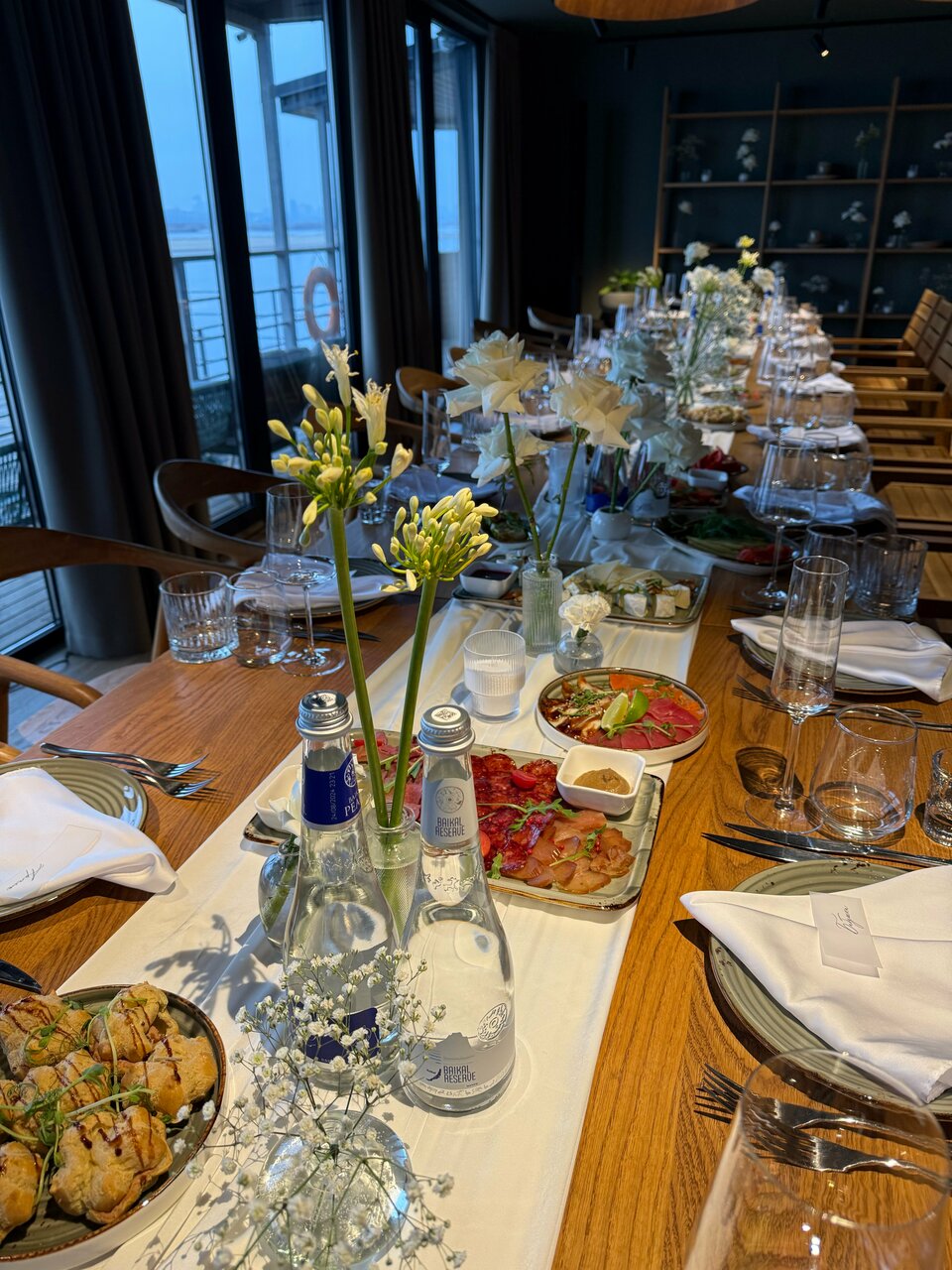- Учет всех пожеланий по меню (аллергии, предпочтения, степень прожарки).; Душевная и комфортная обстановка.; Красивое место с живописными видами (закат, огоньки города, Волга).; Хороший сервис в отеле и ресторане.; Отличные тренеры (вейксерф, вейкборд).