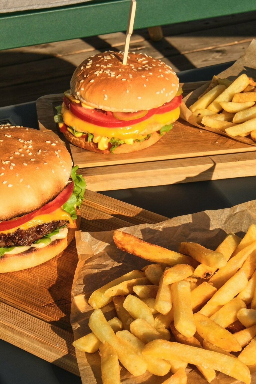Сочная говяжья котлета халяль, томаты, маринованный огурчик, сыр чеддер, пикантный соус, лук, подается с картофелем по-деревенски