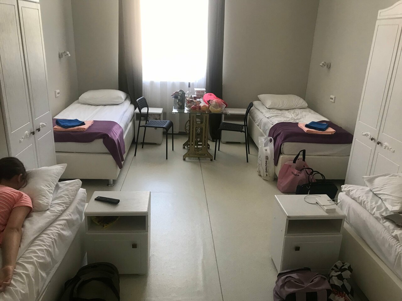 Проживала с семьей в этом отеле,все остались довольны.В номере чистота,постельное чистое,современный ремонт,именться холодильник,большое тв и раслабляющий тропический душ.Окна выходят на зеленый парк-тишина и свежий воздух,парковка бесплатная.Цена смешная,всего 1200 за 4 местный номер.Администратор Татьяна красавица.А еще очень порадовало бесплатное круглосуточное безлемитное итольянское кофе из машины автомат.