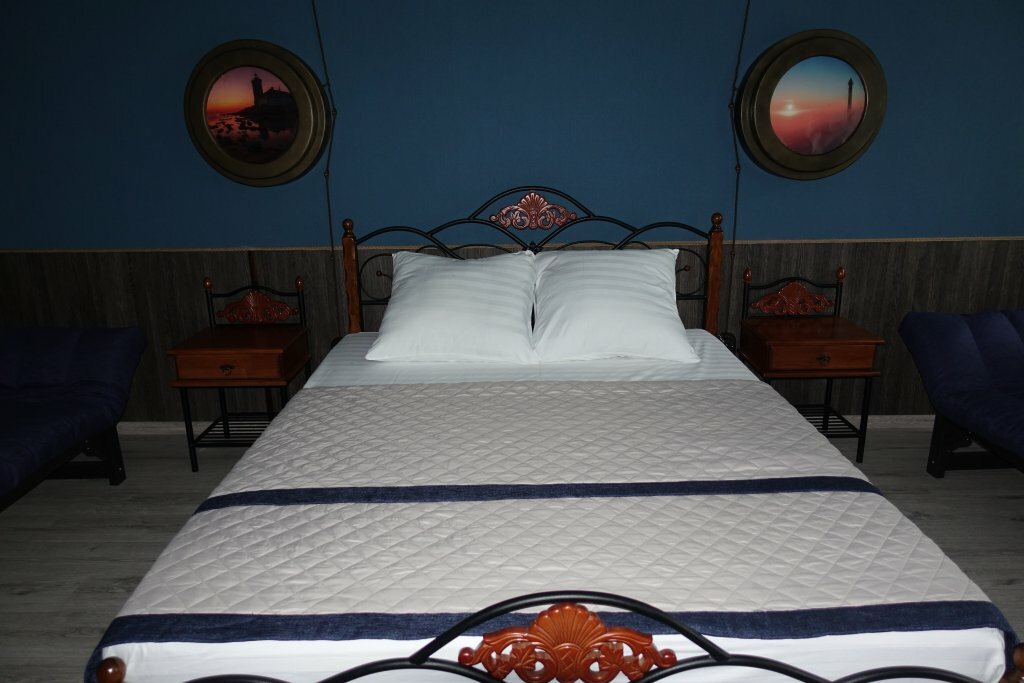 Большой двухместный номер комфорт класса, с двуспальной кроватью и двумя дополнительными местами. Комод для вещей. Стол, стулья. Телевизор. Вмещает 4 человека. С собственным санузлом. Общая кухня