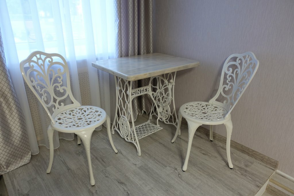 Большой двухместный номер, с дополнительным местом, собственной кухней, собственным санузлом, с видом на красивый парк. В номере комод, шкаф для вещей, стол, стулья, прикроватные тумбочки, телевизор. Вешалка для одежды, банкетка.