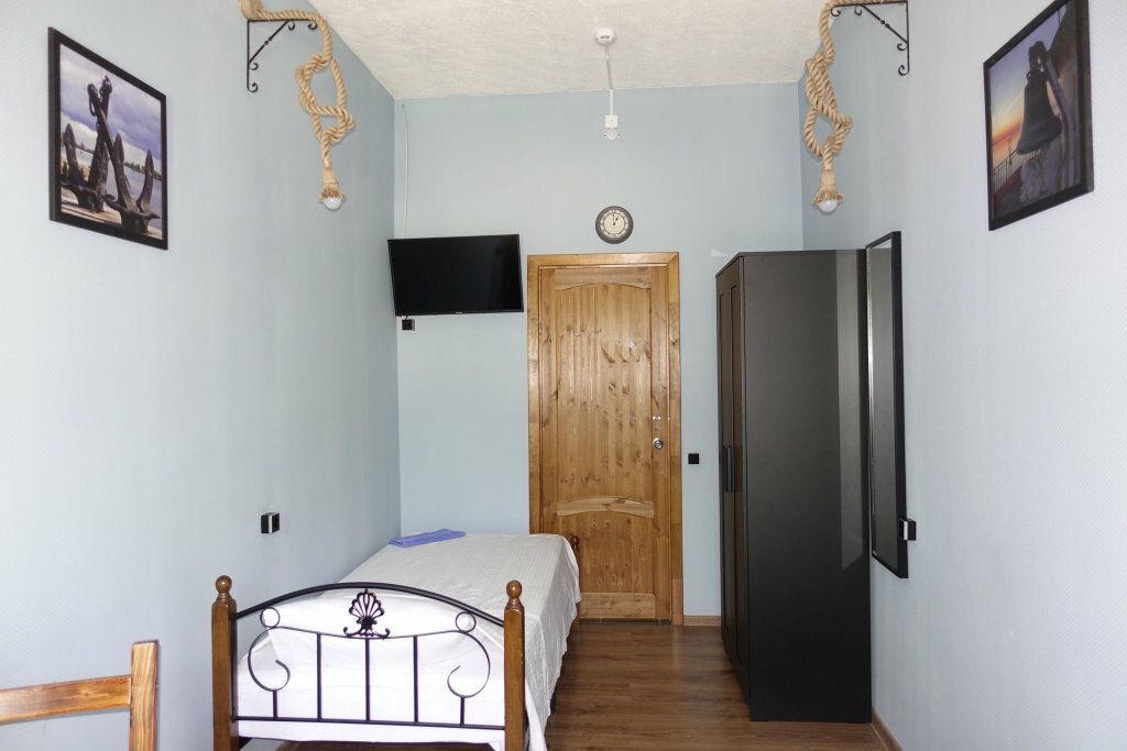 Одноместный номер, комфорт с односпальной кроватью и кресло-кроватью, прикроватная тумбочка, стол, стулья, шкаф для одежды, телевизор. Собственный санузел. Общая кухня.