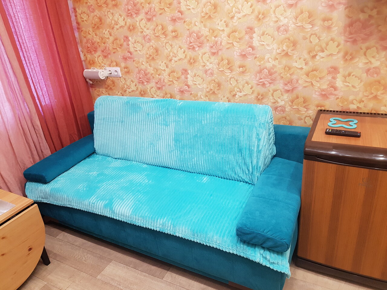 1 этаж жилого дома. Отличный номер, есть всё необходимое: чайник, микроволновка, плитка, стиралка, холодильник. WiFi достаточно шустрый. Чисто в целом, есть недочёты на полу в связи с ремонтом в соседних помещениях. В номере, который мы занимали было 1 двуспальная кровать, 1 односпальная и 1 двухэтажная — можно впятером. Пишут, что номер тесный — нам так не показалось. Понравился ‘умный’ свет в коридоре и парк с детскими площадками по соседству.