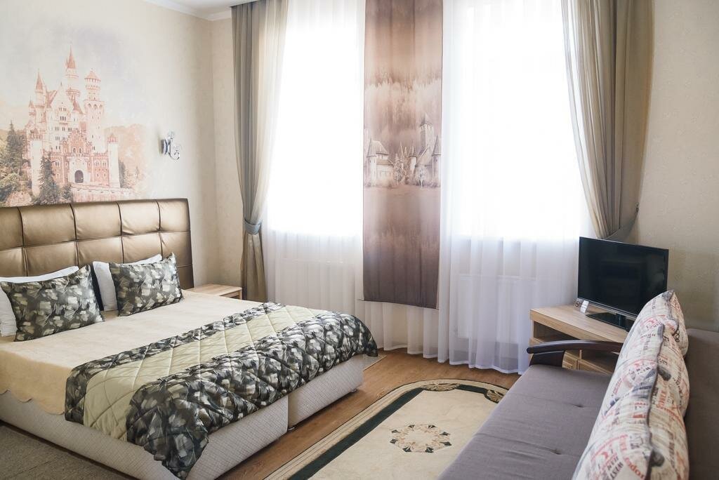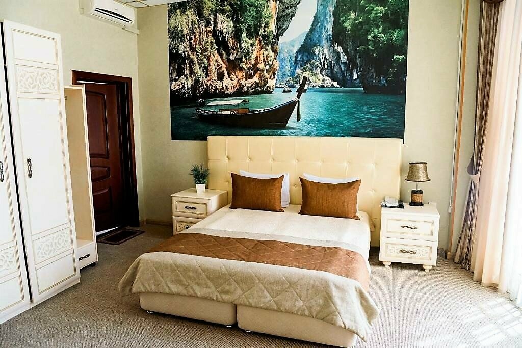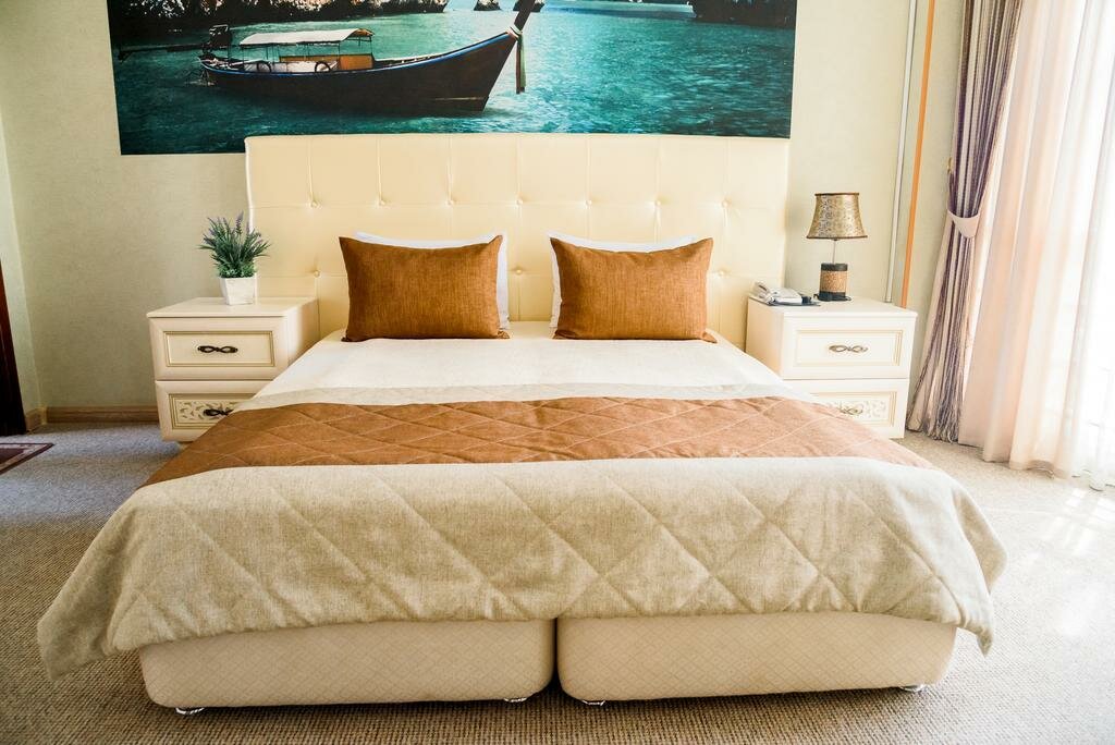 Была в этом отеле 2 дня. Заранее забронировала номер ‘ Мальдивы’. В номере было все необходимое: полотенца, халат, тапочки, холодильник, кофемашина. В номере очень чисто, уборка каждый день. Мебель в хорошем состоянии, белье белое. Была на завтраке в кафе Прованс- продукты свежие и очень вкусная выпечка. Гостиница расположена в центе города, очень удобно добираться. Спасибо администратору, все рассказала- так кая я из другого города приехала.