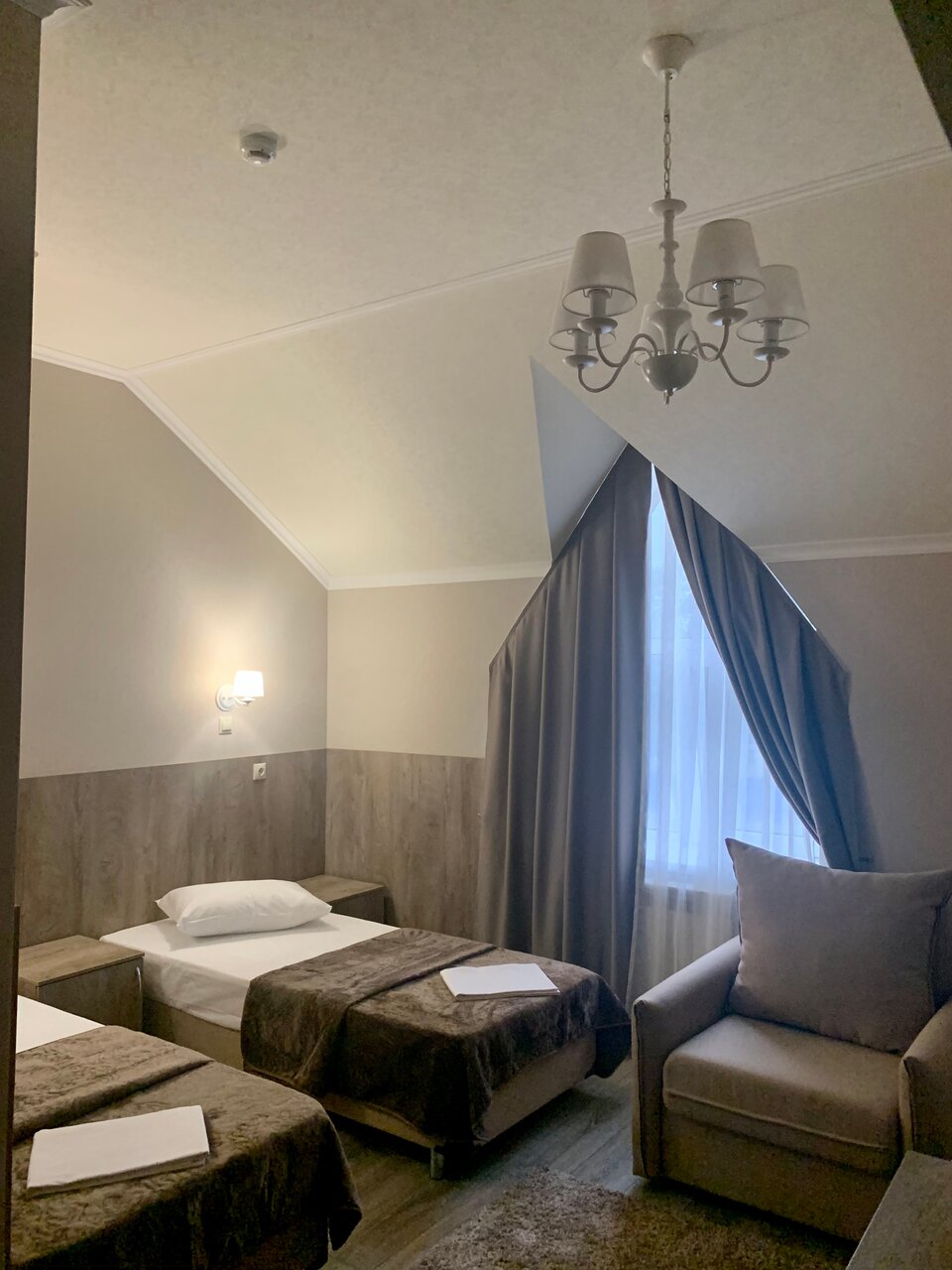Отличный отель за не дорого. По пути в горы или обратно. Новый отель , удобные кровати, есть большой семейный номер на 5 человек.
