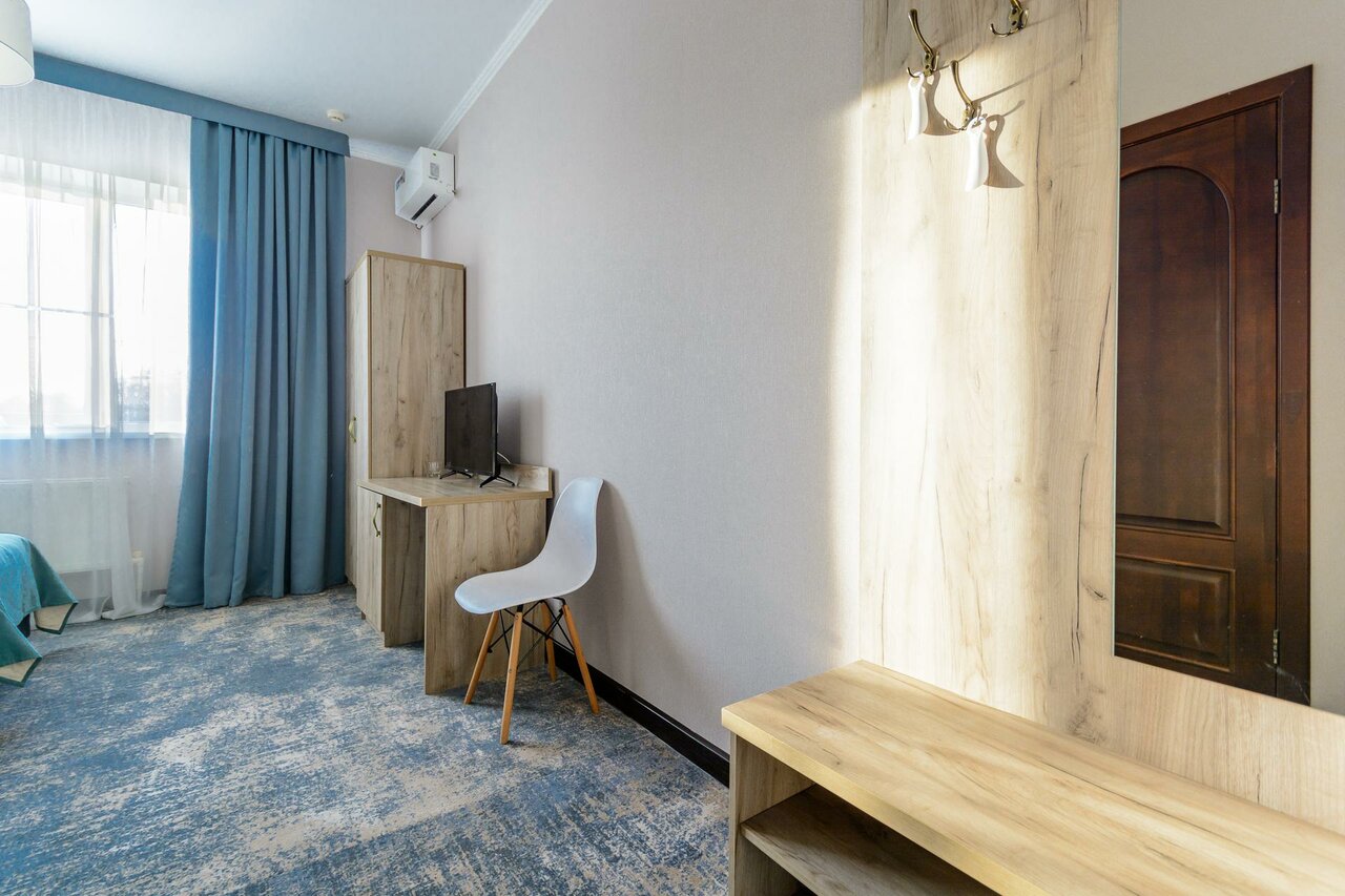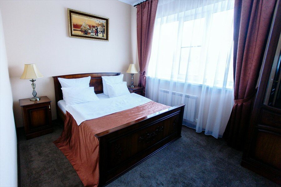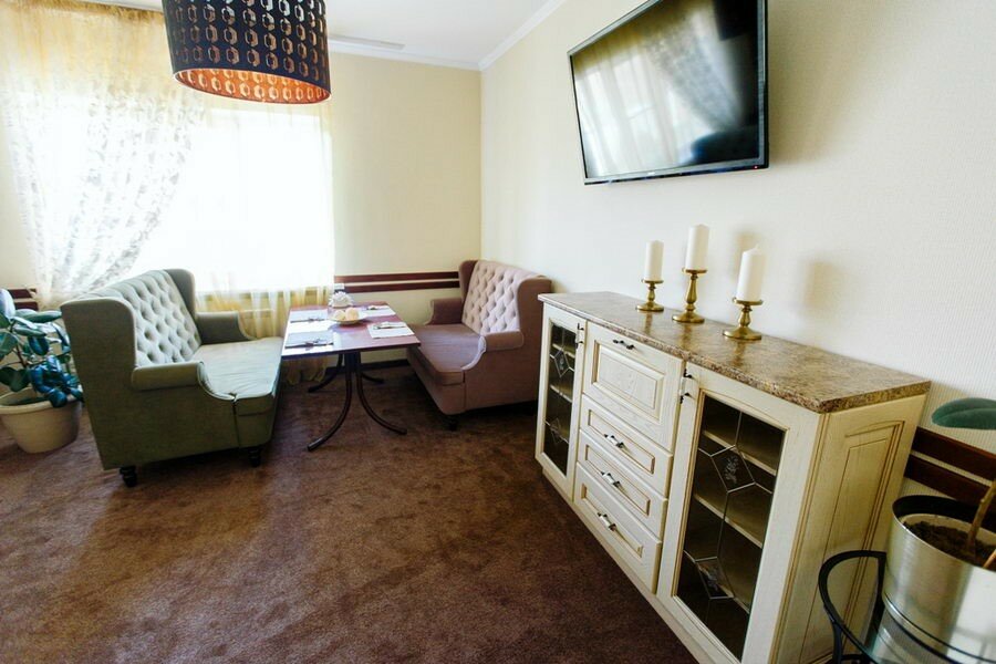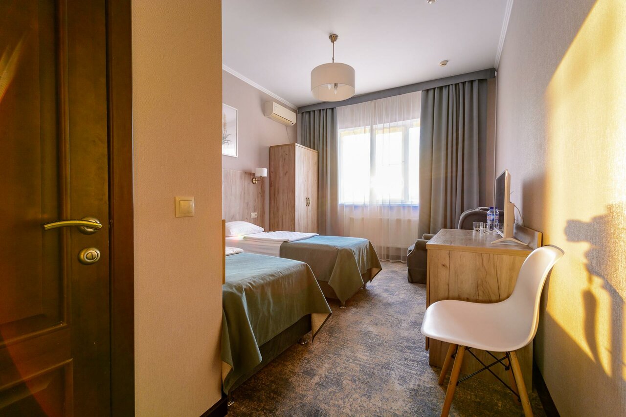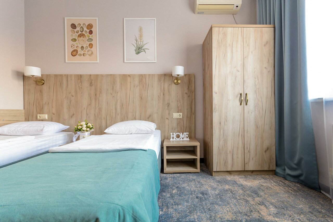 Прекрасное место для отдыха с дороги. У нас семья 5 человек, взяли номер двухкомнатный: 3 отдельные кровати и 1 двуспальная. Первый этаж, окна во внутренний двор — тишь и благодать, несмотря на открытые окна. Матрасы очень мягкие, но это на любителя. Белье чистое, полотенца в достатке, шампуни есть. В комнате кондиционер. Взяли завтрак за 300: 3 варианта на выбор! Все варианты просто отличные!!! Горшок Каши, три сырника, апельсин и тост с ветчиной. Яичница, бутерброд с красной рыбой, брокколи. Сосиски, омлет и тост с самым. К каждому завтраку вкусный морковный пирог! Чай кофе без ограничений! Очень рекомендую это место. Теперь всегда будем останавливаться только здесь!)