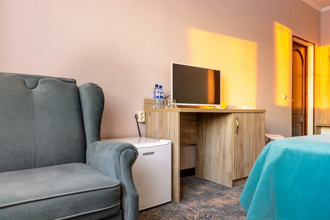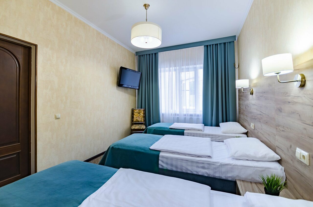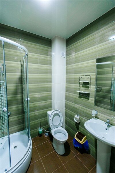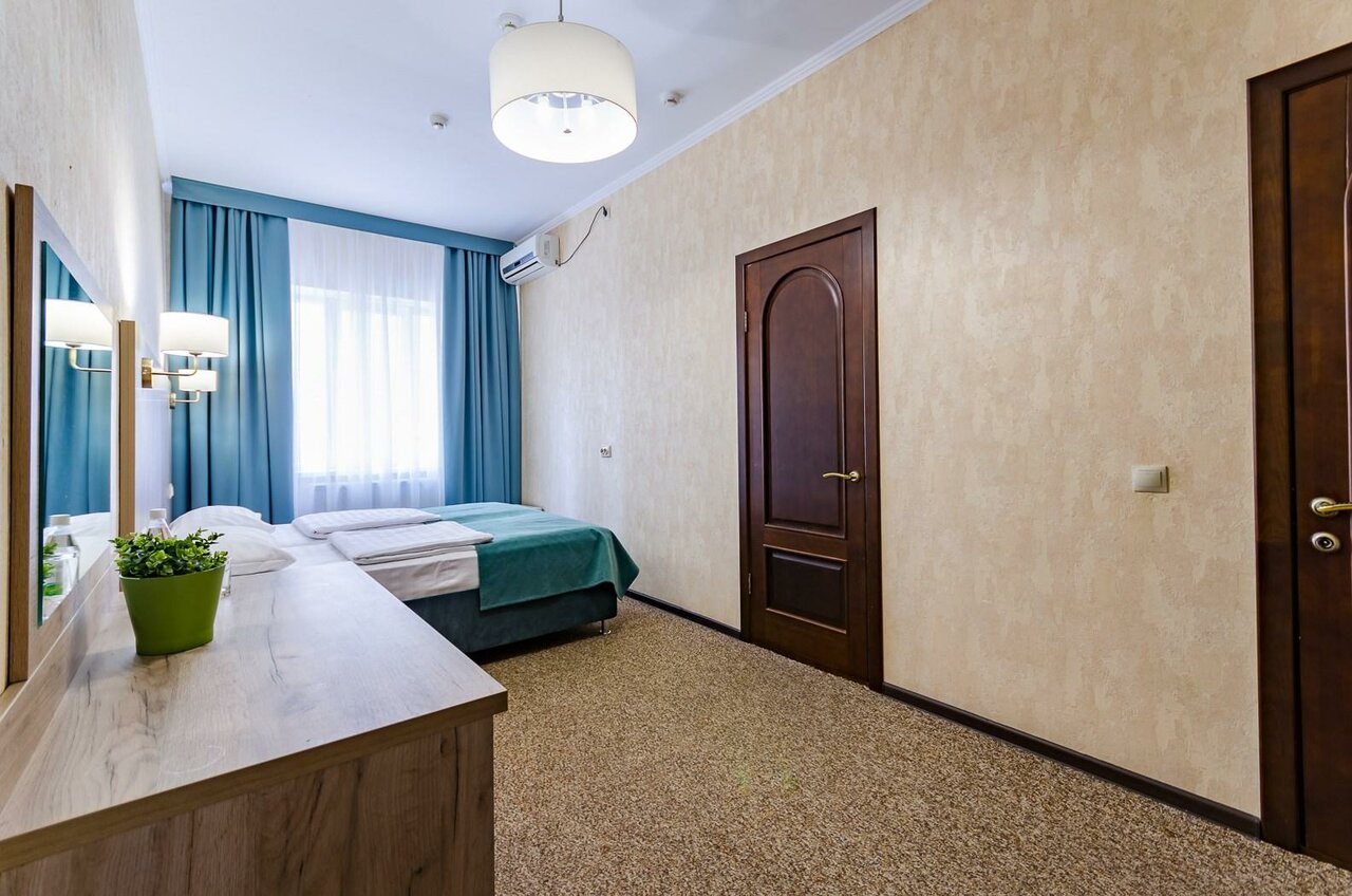 Прекрасное место для отдыха с дороги. У нас семья 5 человек, взяли номер двухкомнатный: 3 отдельные кровати и 1 двуспальная. Первый этаж, окна во внутренний двор — тишь и благодать, несмотря на открытые окна. Матрасы очень мягкие, но это на любителя. Белье чистое, полотенца в достатке, шампуни есть. В комнате кондиционер. Взяли завтрак за 300: 3 варианта на выбор! Все варианты просто отличные!!! Горшок Каши, три сырника, апельсин и тост с ветчиной. Яичница, бутерброд с красной рыбой, брокколи. Сосиски, омлет и тост с самым. К каждому завтраку вкусный морковный пирог! Чай кофе без ограничений! Очень рекомендую это место. Теперь всегда будем останавливаться только здесь!)