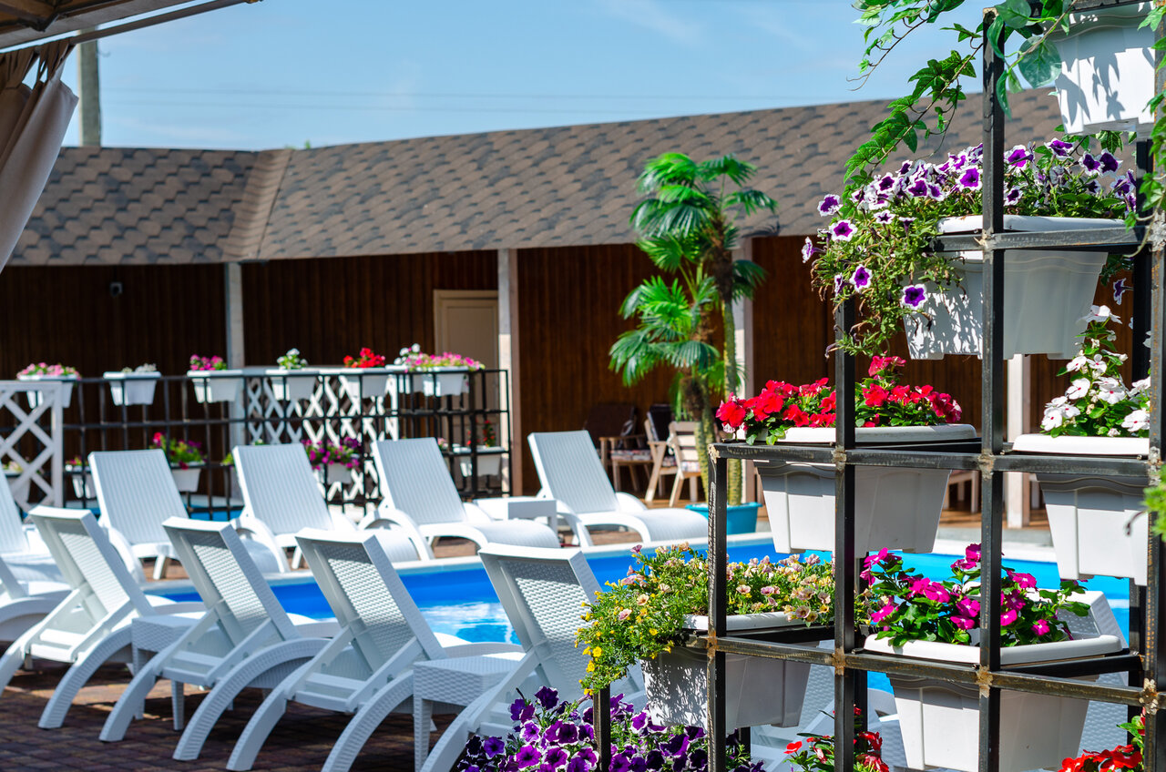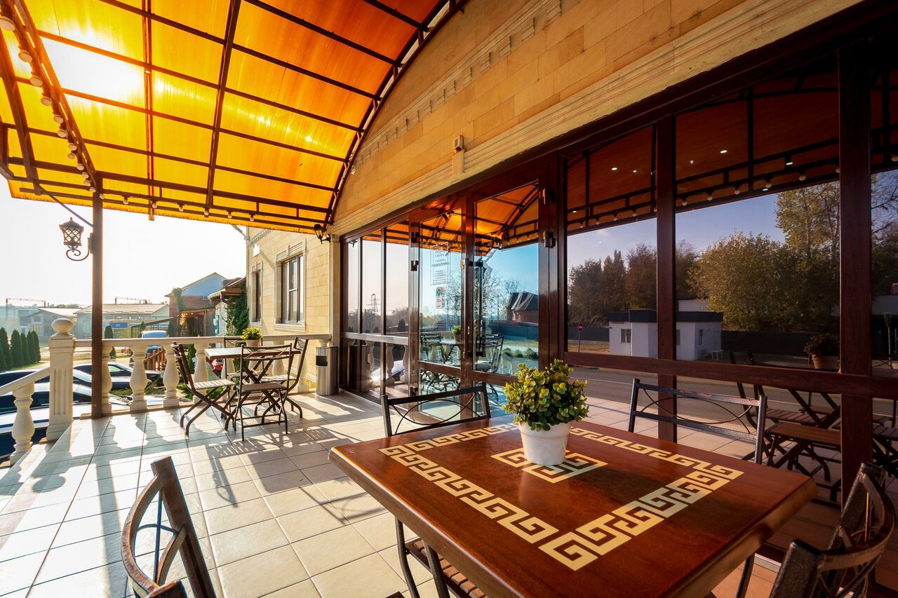 Хорошая гостиница, вкусные завтраки, на территории бассейн с шезлонгами и замечательное кафе, в помещении кафе с кондиционерами, на улице столики под навесами, приятный дизайн, расслабляющая обстановка.