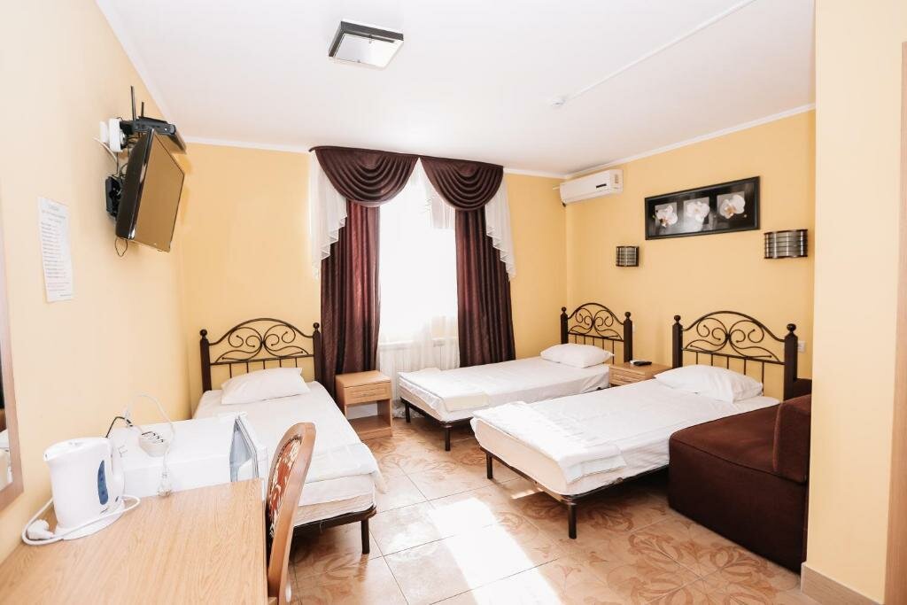 Недорогой отель по дороге из Коыма на Кавказ. Завтрак включен в стоимость. Хорошие номера. Но очень много номеров, окна которых выходят на пивзавод, а от туда идёт на прорывный шум, гул круглые сутки. Так что если ваш сон чуток к посторонним шумам, то возможно будет не комфортно. А так в номерах всё есть: постель, полотенца, мыло и шампунь ( одноразовые).