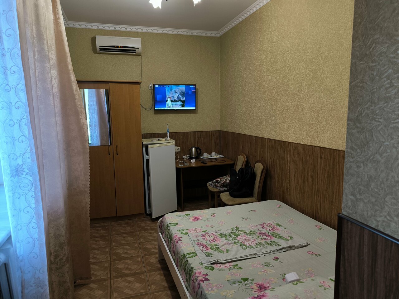 В гостиничном номере чисто, свежий ремонт, новая мебель все это по демократичной цене.