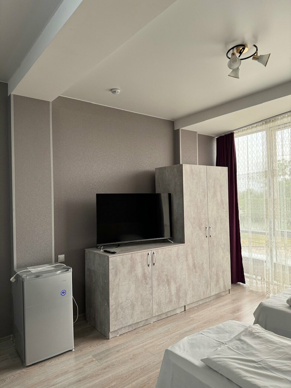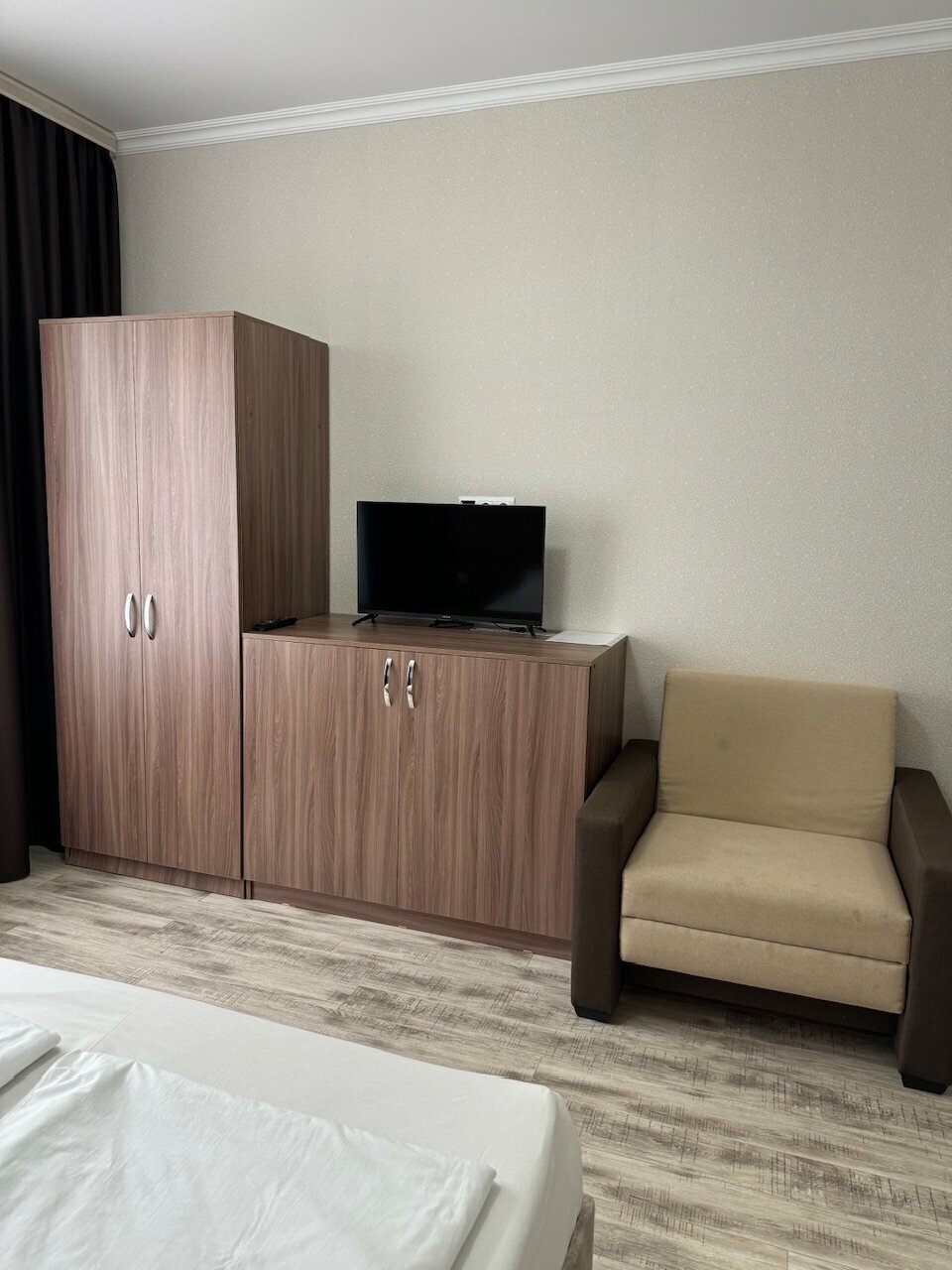 Номер Трёх местный,номера со всеми удобствами: Телевизор, холодильник, сан.узел, сплит.система. В номерах есть одноразовые тапочки ,одноразовые щётки , мыло, шампунь, вай-фай . Информацию уточняйте по ноу тефона
