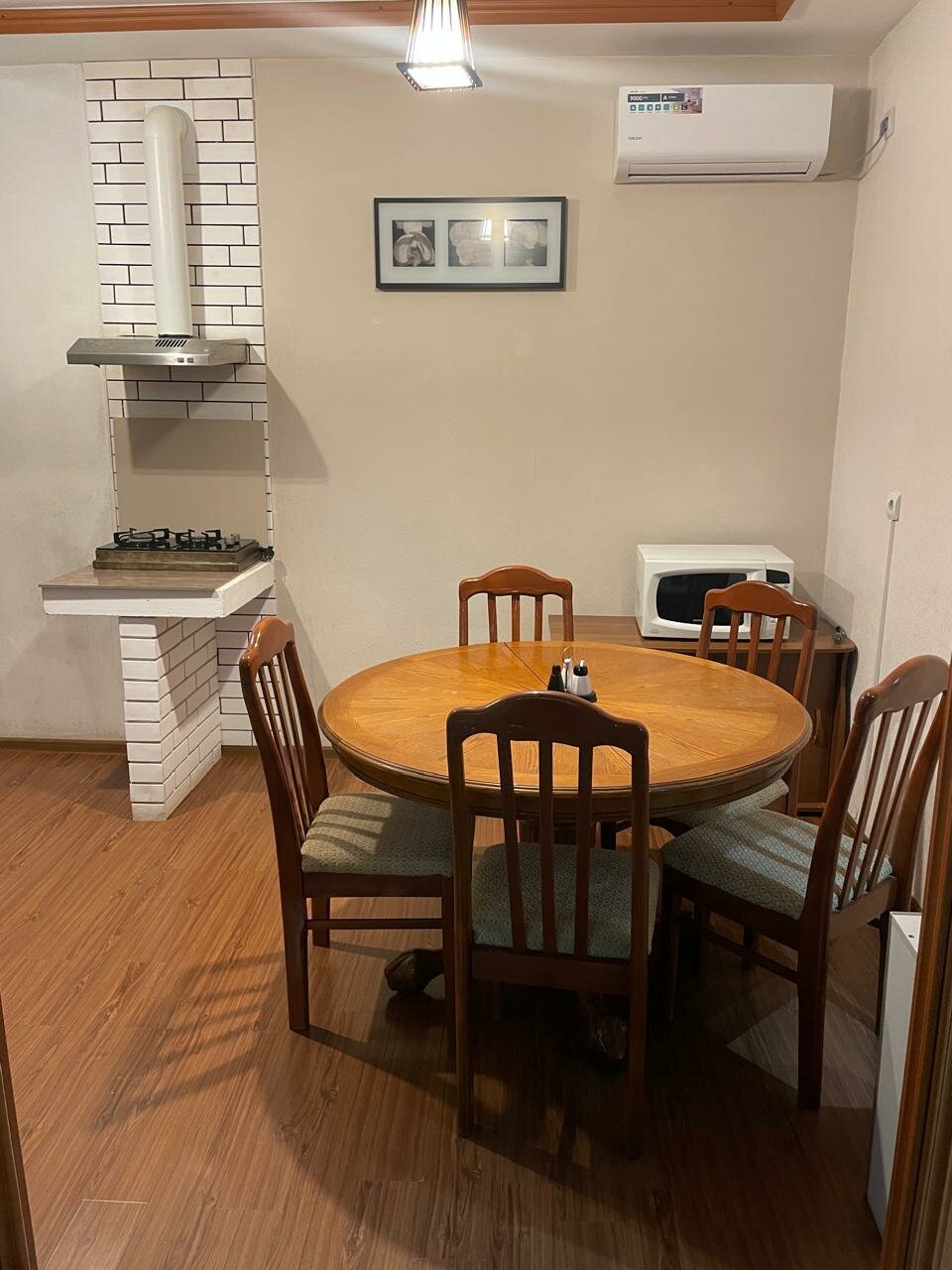 Снимали двух комнатный номер на первом этаже. Персонал приветливый, не навязчивый. Номер хороший, есть все необходимое, плита, холодильник, микроволновка, стиральная машина, утюг, эл чайник. На кухне телевизор. Чисто, горячая и холодная вода без перебоев. В общем все понравилось. Спасибо!