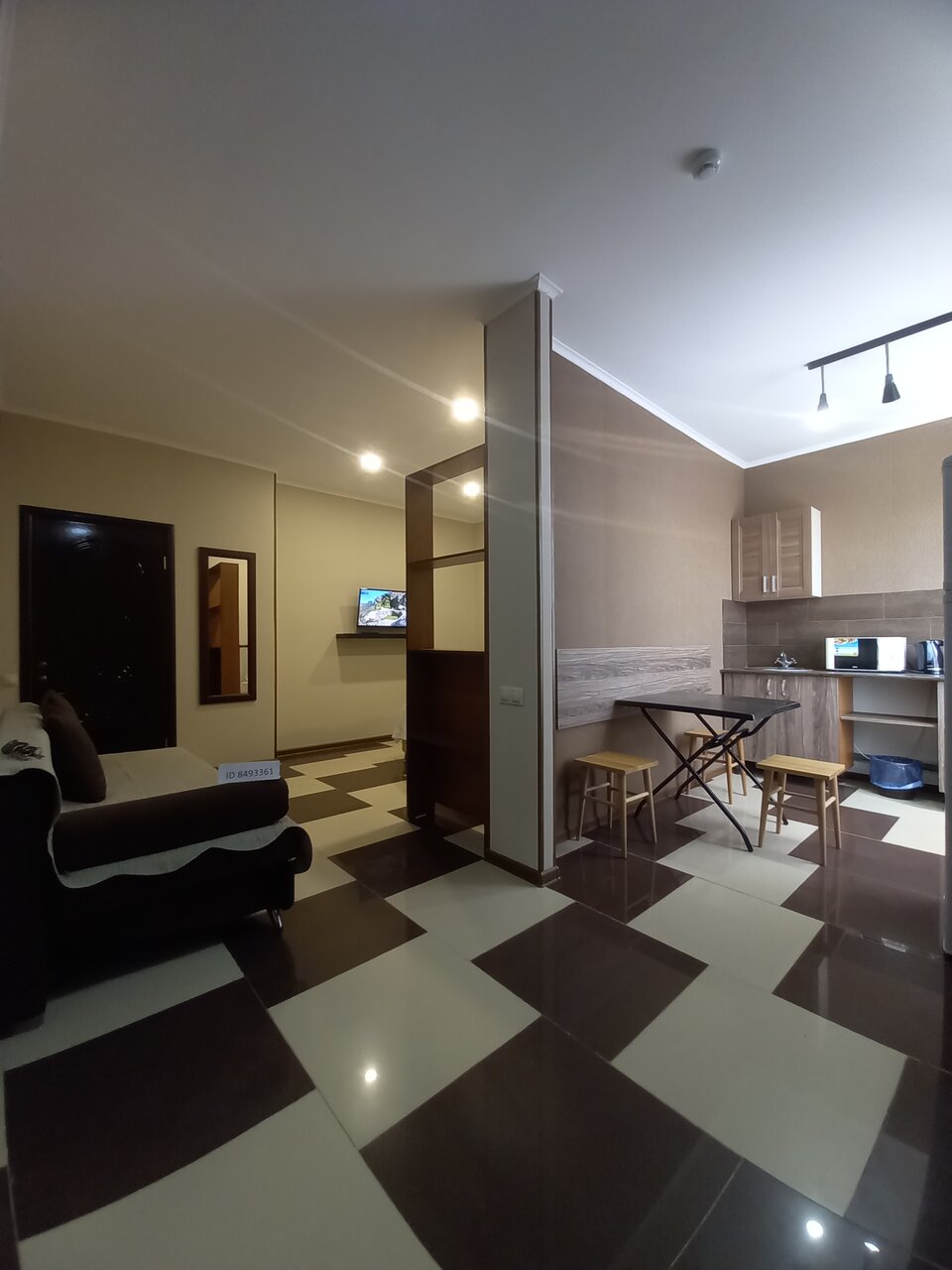 Расположение довольно удобное, номер был просторный, имеется телевизор, холодильник, душевая, кухня вынесена за пределами номера, что немного не понравилось, так это микро чайник и слабенькая микроволновая печь. Администратор общительный и все проблемы быстро устраняет. Одним словом рекомендую.