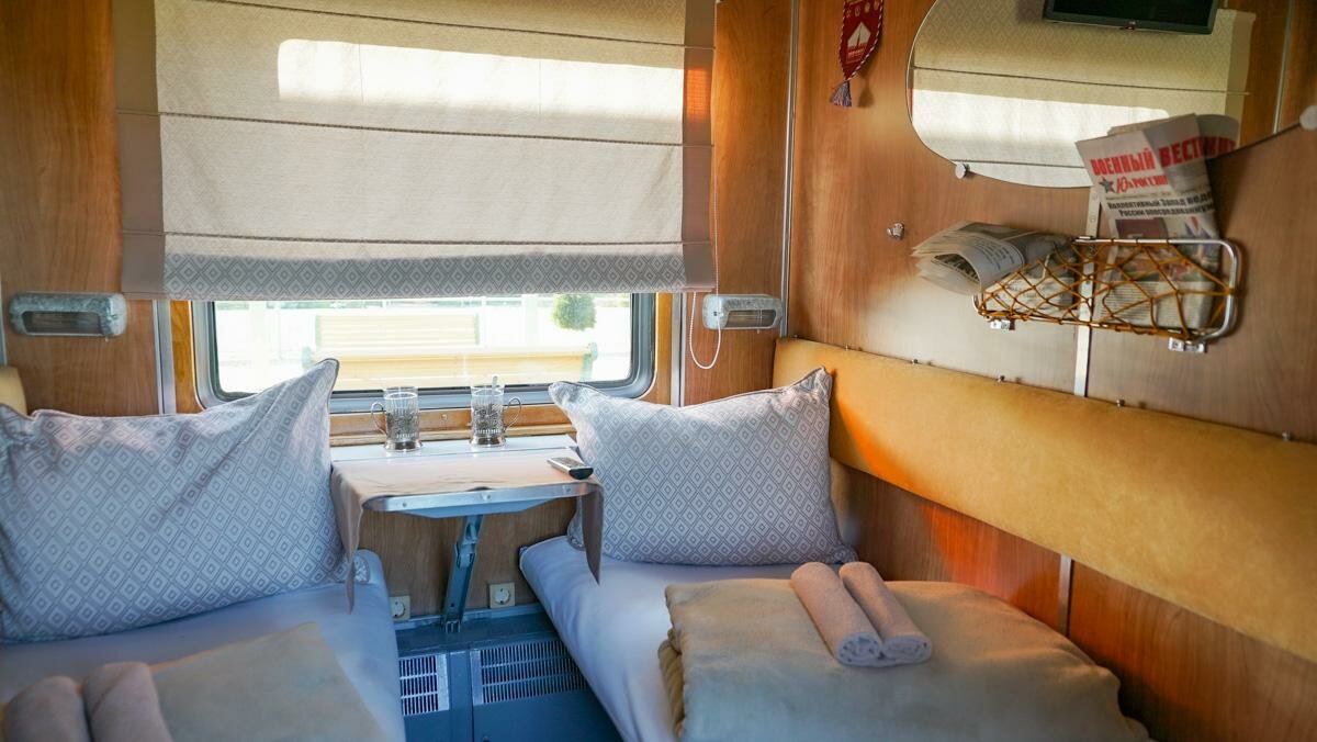 Прекрасный, уютный номер. Вежливые Проводницы. Снизила бал за то, что не включён с утра кондиционер, когда было очень жарко.