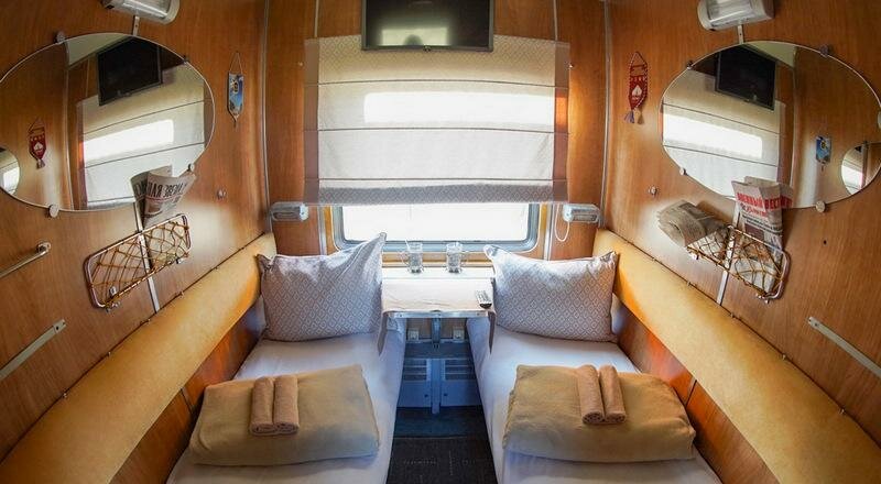 Удобное расположение рядом с Партизанской деревней, вагон ретро, есть возможность принять душ, а в целом комфорт, как в поезде, только никуда не едешь)) Вагон-ресторан не работает, соответственно поесть только в самой Партизанской деревне, с 18.00 до 10.00 нигде еды не купишь, берите с собой. Кипяток есть, чайные пакетики берите свои.