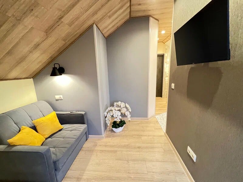 Трехкомнатный двухэтажный номер высшей категории - 'Люкс с двумя спальнями'Оснащен по последним современным стандартам: технологичность и яркий стиль нашего дома создадут комфортную атмосферу для отдыха и работы вдали от дома.