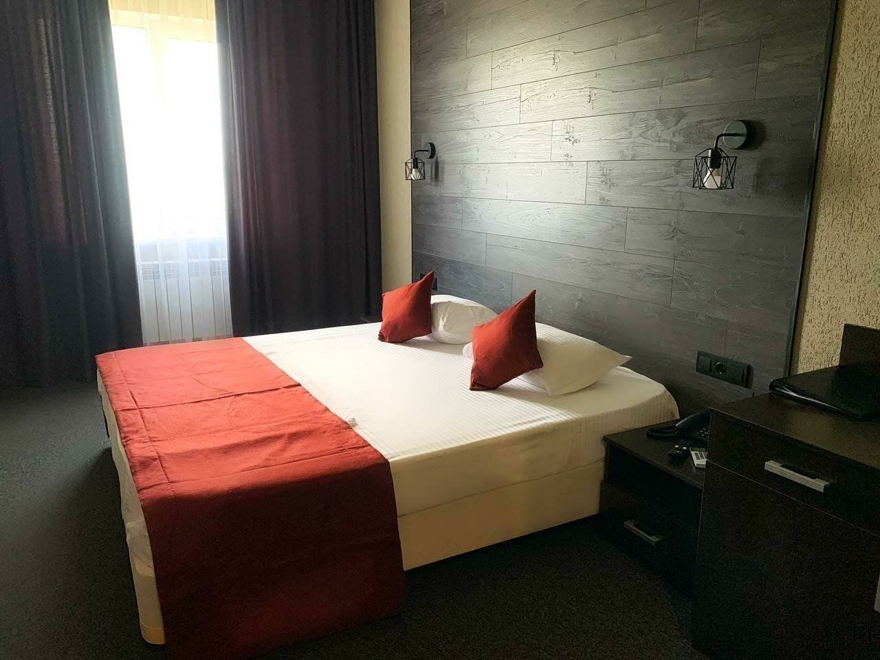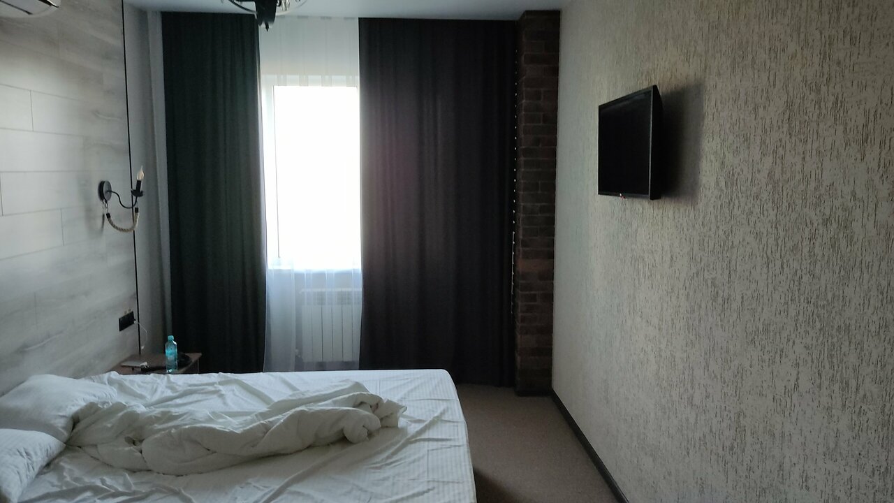 Гостиница новая, достаточно чисто в номерах. Очень приятная и доброжелательная женщина на ресепшен, в ресторане при отеле достаточно вкусная еда. Минусы — очень маленькие и очень дорогие номера (от 5 тыс. рублей в сутки), душ уже пожелтел, вода застаивается на полу, очень плохая шумоизоляция. Вид из окна хороший. Но мое мнение, цена очень завышена для этого отеля и для этого города тем более.