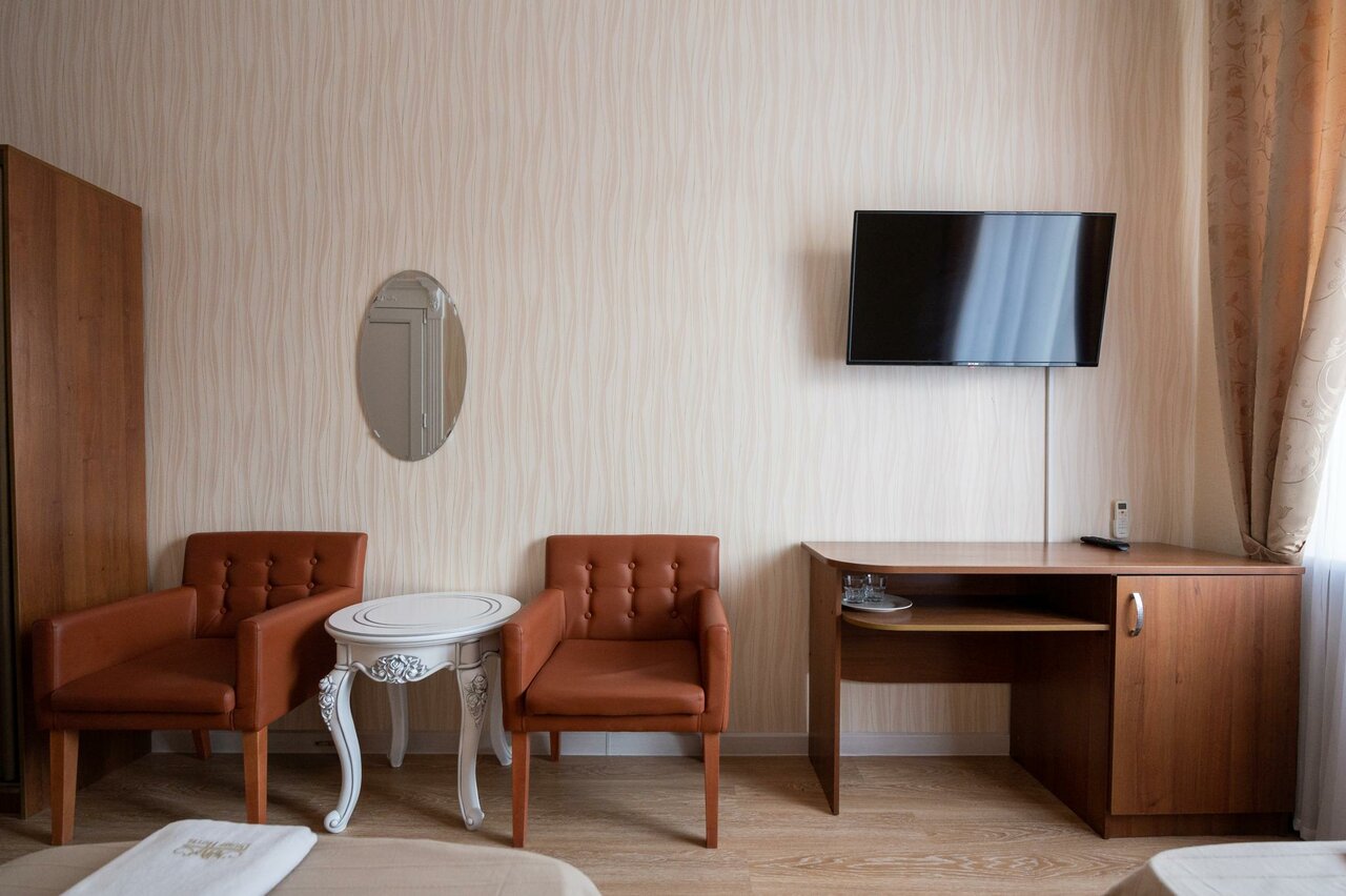 Гостиница предлагает комфортабельные номера (от 1000 до 6000 ₽/ночь) с кондиционером, Wi-Fi, телевизором, мини-баром и чайной станцией. Для гостей доступны: крытый бассейн, сауна, хаммам, тренажёрный зал, ресторан, кафе, салон красоты и SPA-услуги.