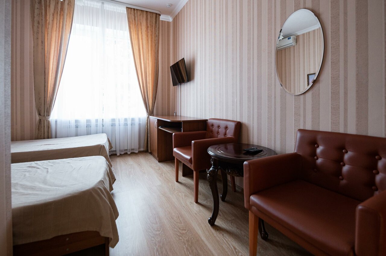 Классический двухместный номер со всеми удобствами. WI-FI, телевизор, холодильник, сплит-система, комплект полотенец, фен.