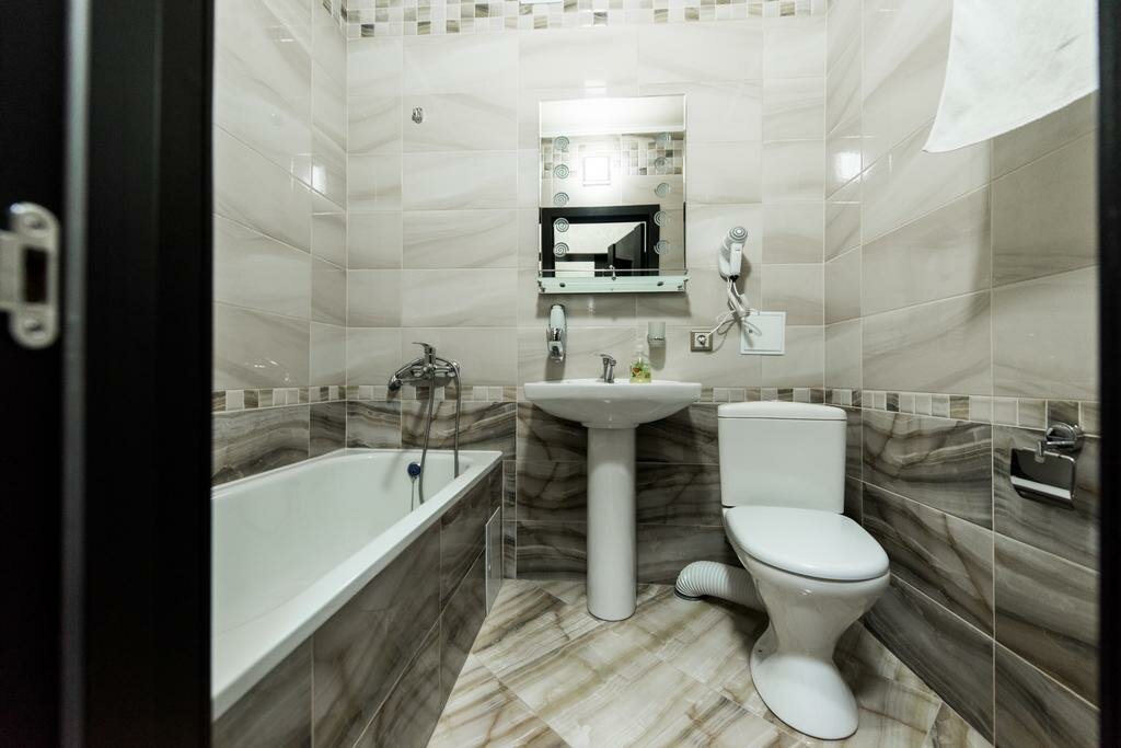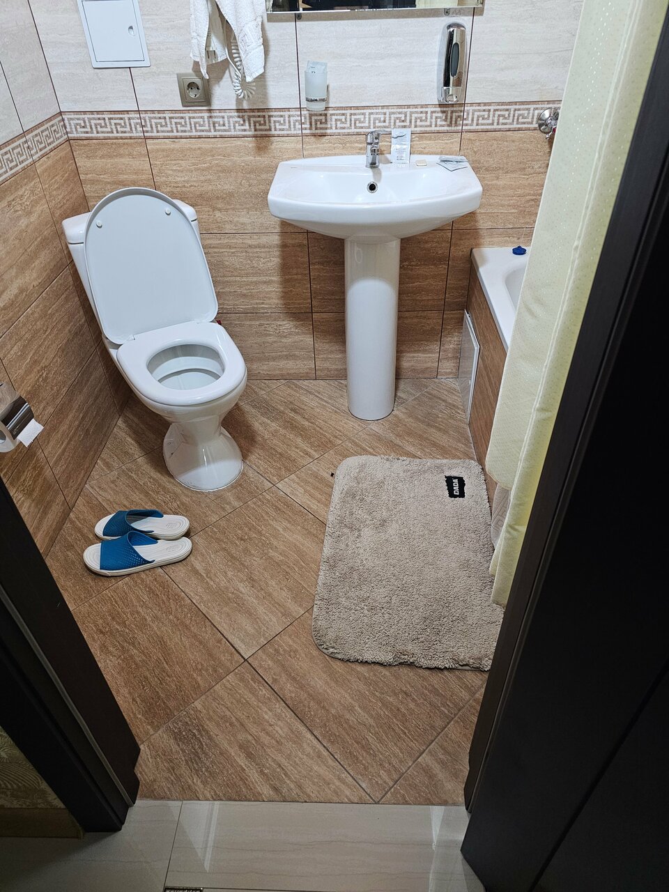 Одним словом Супер! Все хорошо. Чисто, уютно. Нет запаха влаги и т.д. Чистое и приятное белье, удобная кровать. В номере есть все необходимое. Холодильник, телевизор, набор посуды. Удобная ванная, и туалет. В номерах есть выход на балкон. Кто курит, очень удобно. Завтрак 200 р. Стирка 150. Простирают и посушат. Принесут в номер.