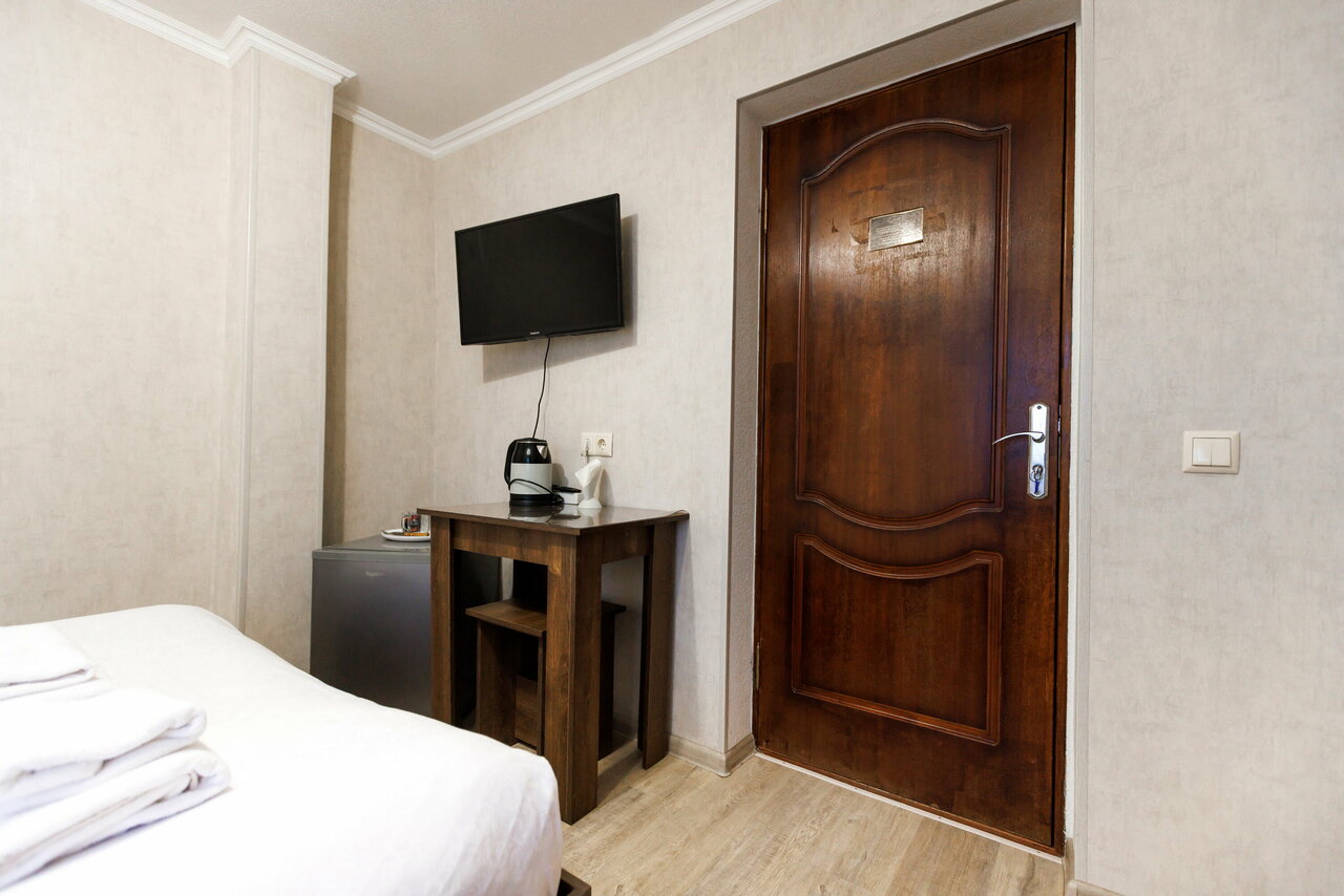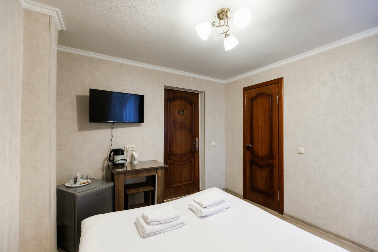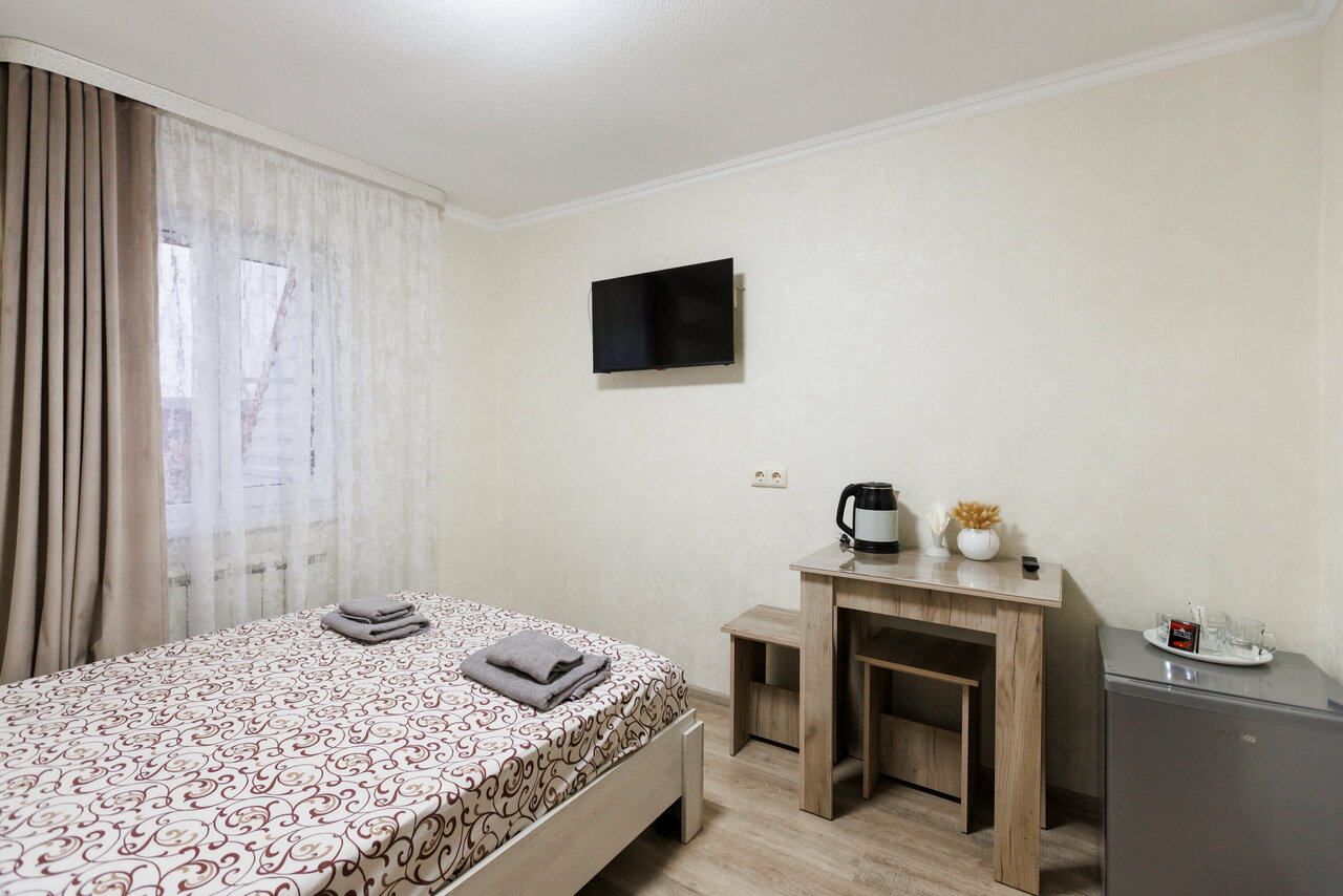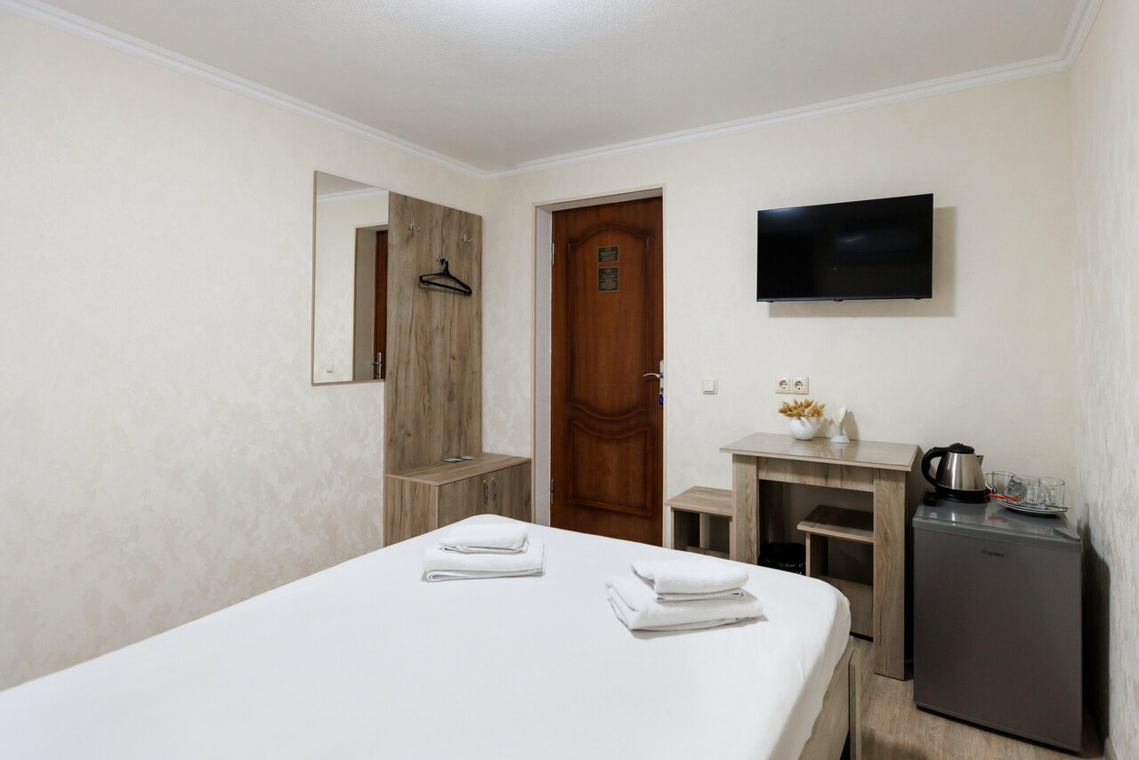 Проживание в бюджетном двухместном номере. В номере телевизор, холодильник, посуда, чайник