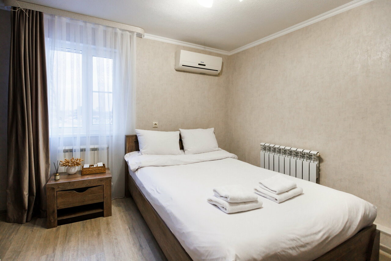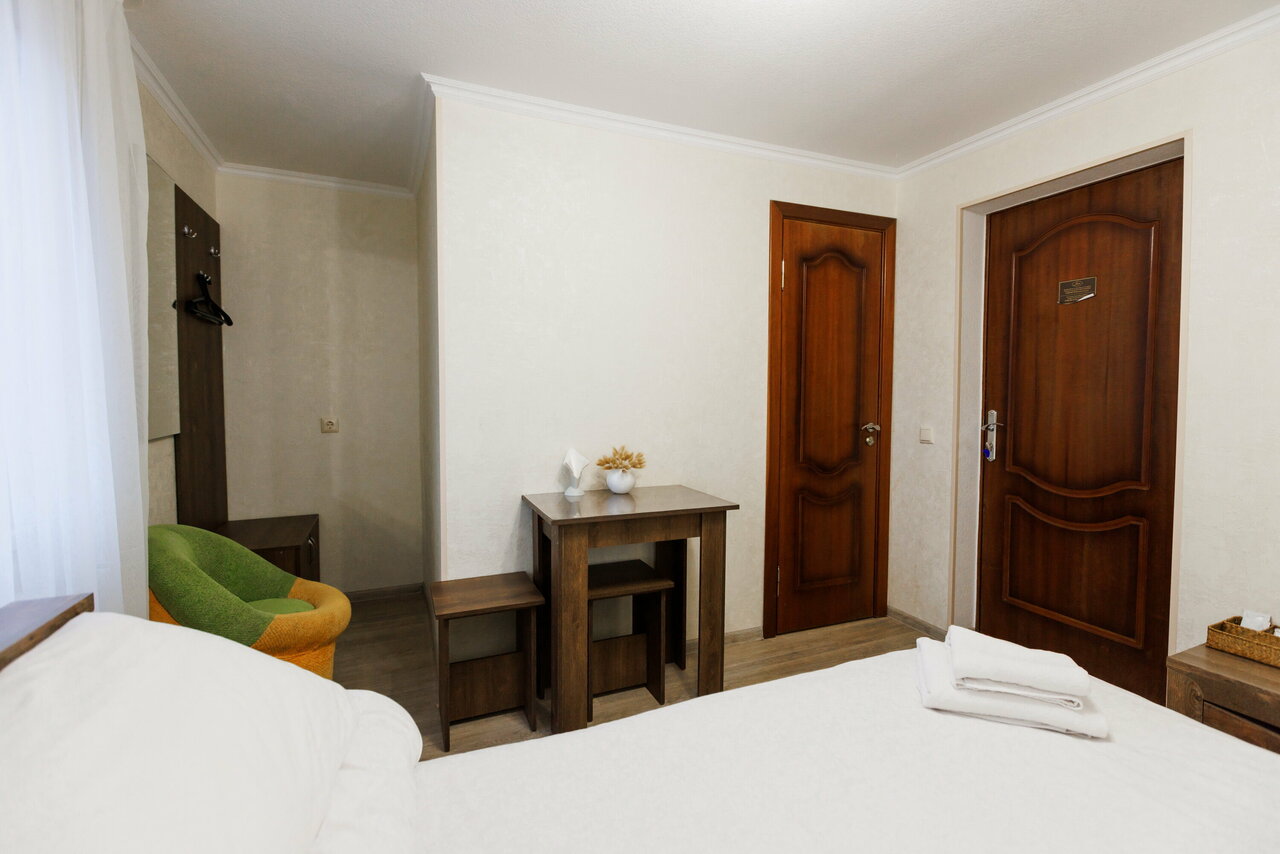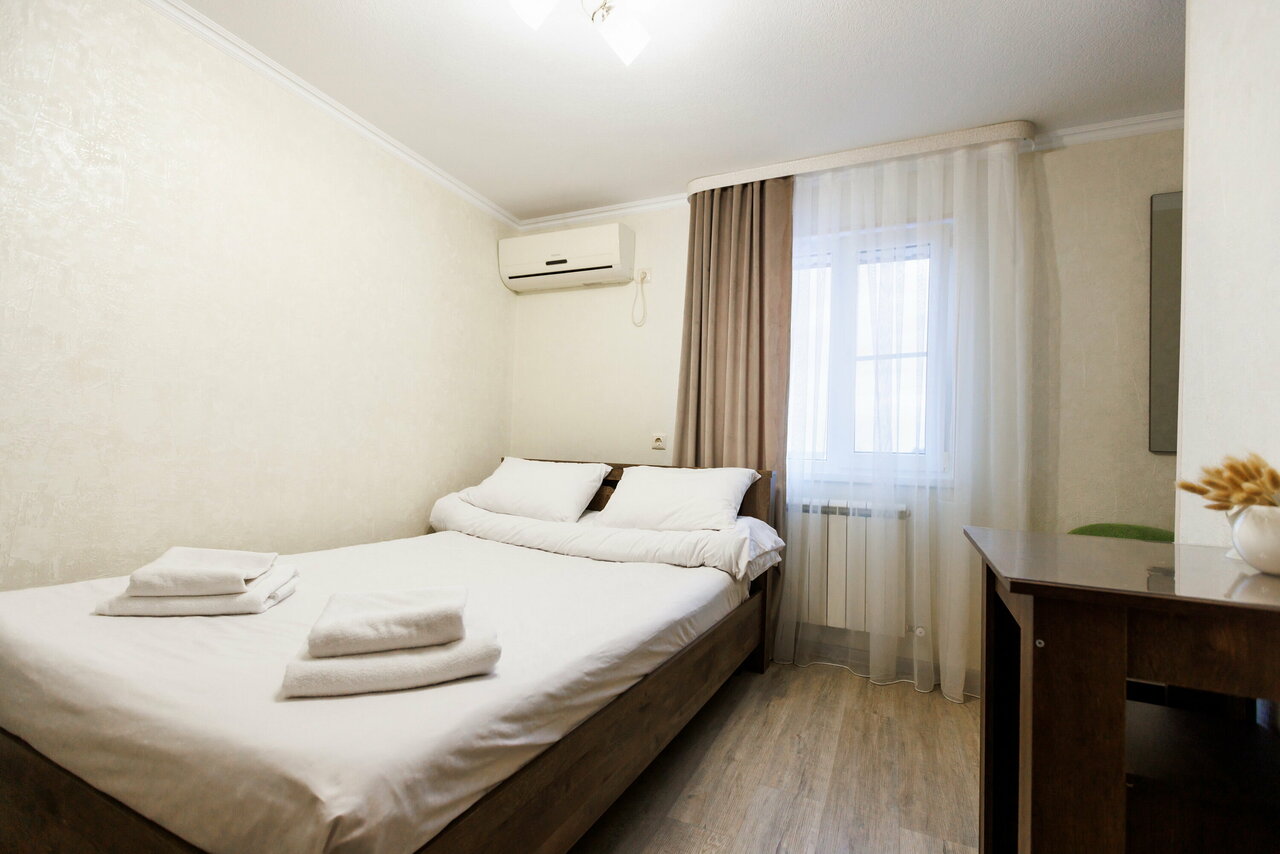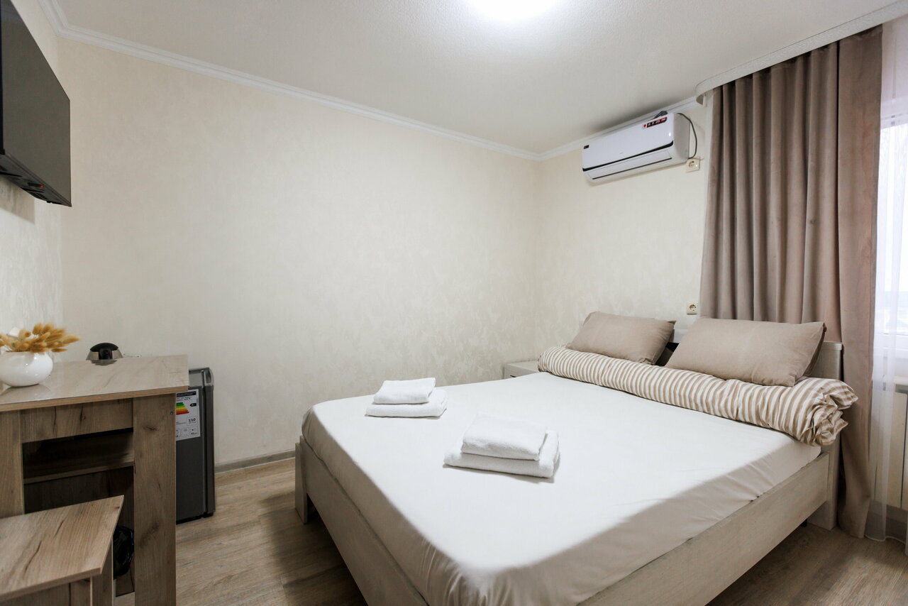 Проживание в стандартном двухместном номере со всеми удобствами: санузел, телевизор, холодильник, кондиционер, чайник, посуда