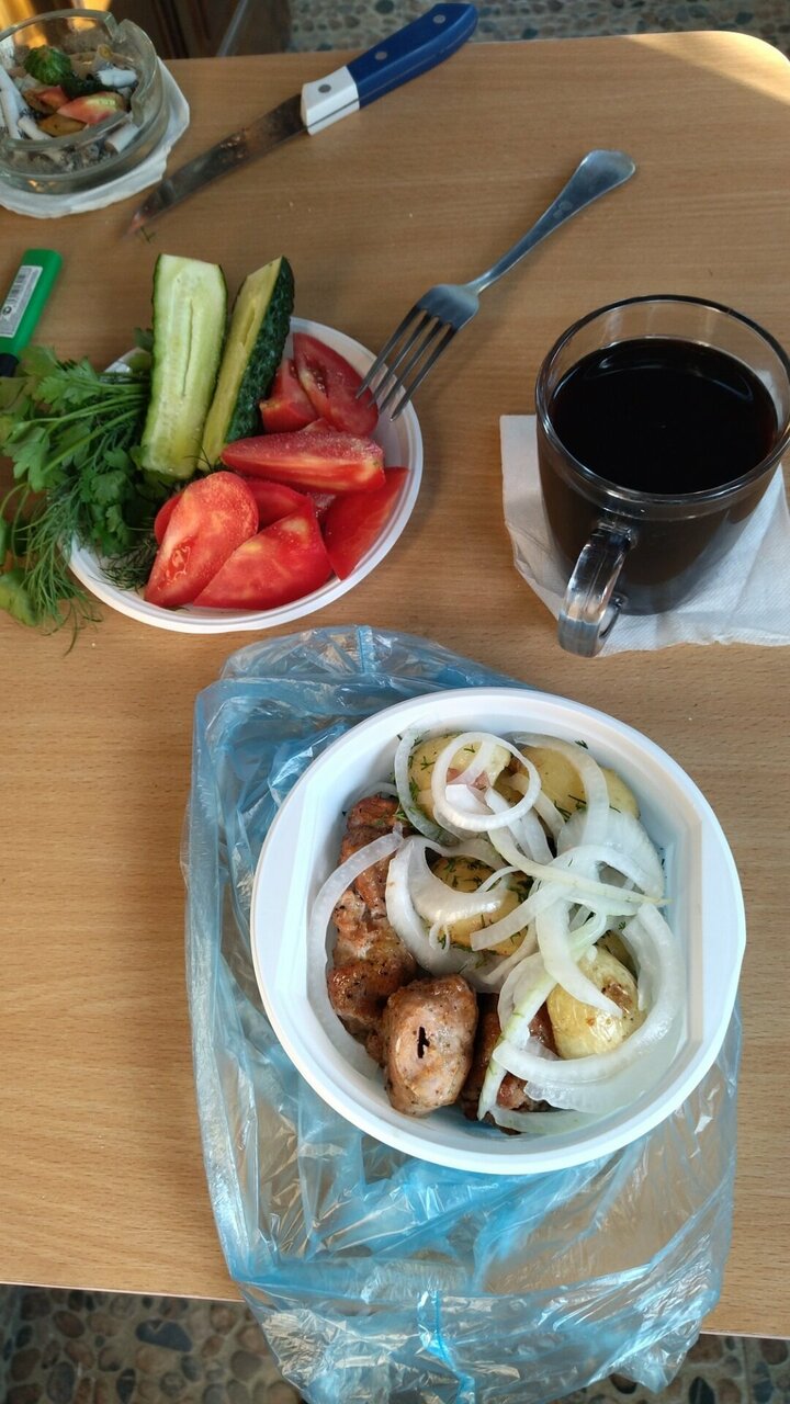 - Вкусная еда (шашлык, рыба, картофель, курица).