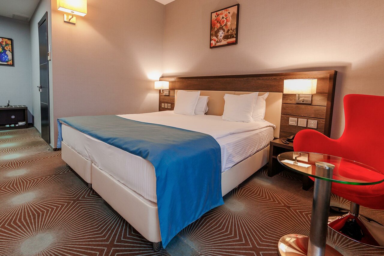 Номера большие, имеется все необходимое, кровати удобные. В номере есть мини бар, но по цене дороговато. В отеле проводят корпоротивы, для отдыхающих не очень удобно. Имеется спа зона. Расположение от ж/д вокзала в 10 минутах. Завтрак шведский стол, очень вкусные. Сам ресторан где подают завтраки очень маленький. Персонал приветливый.