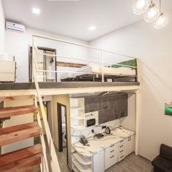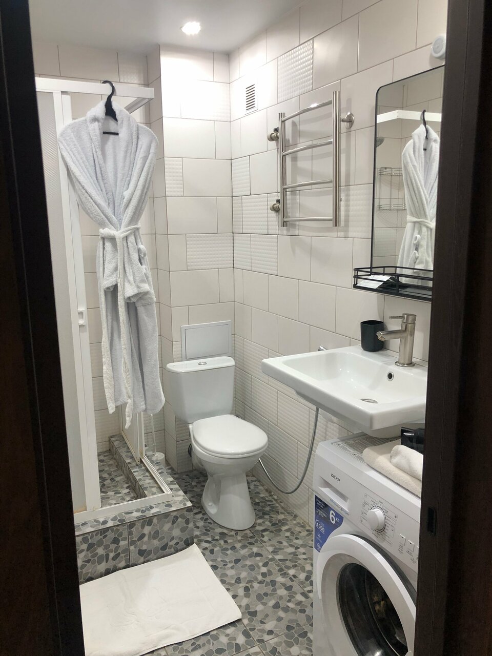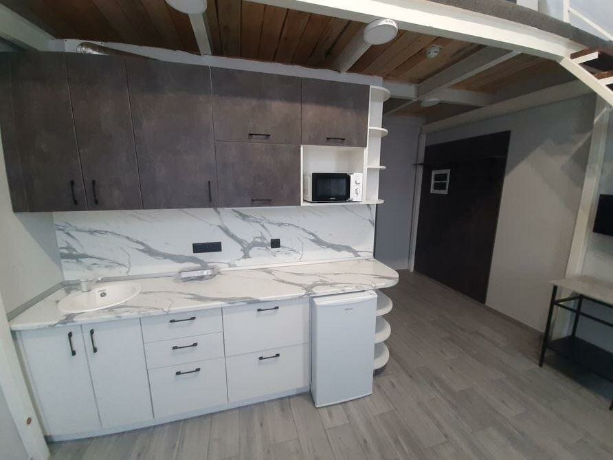 Студия включает в себя: спальню и ванную комнату. Кухня с принадлежностями находится в зоне спальни. Уборка проводится по запросу, предоставляются полотенца, туалетные принадлежности. Разместиться в студии с комфортом могут 2 гостя. Площадь 21 кв.м