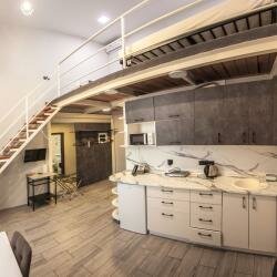 Двухместные апартаменты с кухней и ванной-джакузи. Интерьер оформлен в стиле модерн. Номер вполне подойдет для семьи, возможность размещения до 4 гостей. Площадь номера 26 кв.мВ номере: широкая двуспальная кровать, большой ЖК телевизор, кондиционер.