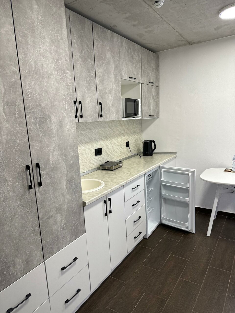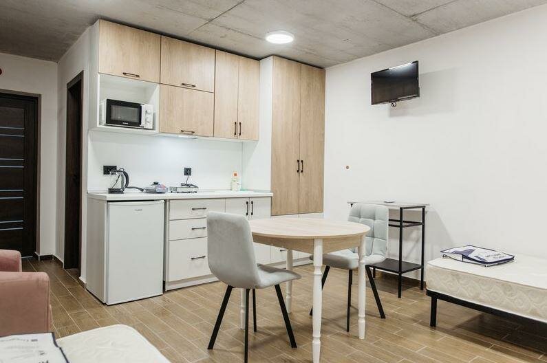 Очень благодарны персоналу за предоставленный уютный номер. Были в начале ноября 2023 г. Чистота идеальная. Интерьер современный. Все необходимое в виде халатов, полотенец и средств гигиены в необходимом количестве в номере присутствовало. Также в номере была кухня с набором посуды, чайником, микроволновкой. Тепло и комфортно. Ночью тишина, выспались прекрасно. Цена за номер вполне адекватная. Желаю отелю процветания.