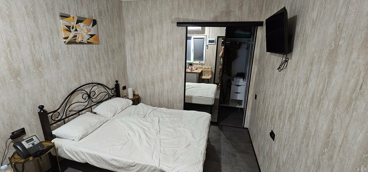 Апартаменты с двумя раздельными кроватями, диваном, кондиционером, кухней, подходит для командировок и размещения семьи. До четырех мест. Площадь 25 м.кв.