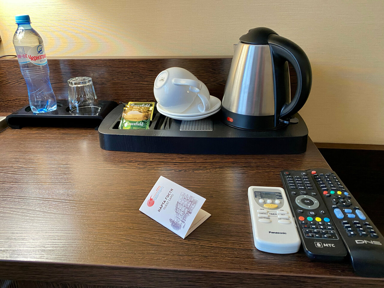 Ни в одном отеле даже самом убогом не берут деньги за минибар. На выезде заставили оплатить 920₽! АЛЛО!! Вы в своем уме? У меня полноценный обед в Курске выходит на эту сумму, а то и меньше! Для понимания: съели маленькую пачку орешек, чипсы, кола и мини-шампанское. Чая и кофе в номере нет. В номере дубак, телевизор не работает. Ну и номер ремонтировали явно давно, плинтуса и рамы в ванной вздутые все. 10.200 за два для и 920 за мини бар. Будьте готовы.