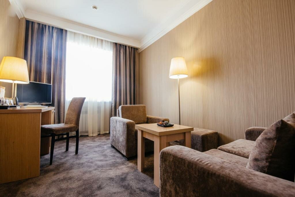 Дважды останавливались по служебным нуждам. В мае и июне 2023г. Категория номера одноместный улучшенный. Гостиница позиционирует себя как 4 звёзды. В оба заезда остались довольны. Номера чистые, мебель и бельё удобные, спится отлично. Набор услуг в номере соответствует. 4 полотенца, халат, тапочки, принадлежности…. Но иногда разный набор в одинаковых номерах. Зуб щетки и бритвы может и не быть. Но это придирки. Из плюсов: тренажерный зал по ключу от номера. Отличный завтрак, шведский стол, но не бюджетненько 600р . Ресторан так себе, имею ввиду качество гриля и подачу. Стейк беда, картофель разной степени прожарки, часть сыровата. В городе есть ресторанчики с более лучшим соотношением цена/качество. На пример Фаворит в парке напротив. Очень рекомендую, не пожалеете. Другие варианты в городе или сезонные или мини формы.