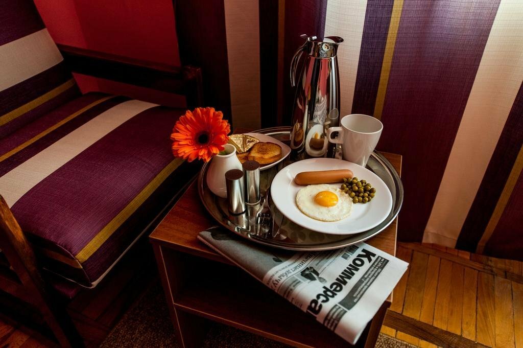 Прекрасная и уютная гостиница в центре г. Курска, шведский стол на завтрак. Один маленький минус — телевизор почти ничего не показывает, но за 2100 в сутки с завтраком это нормально.