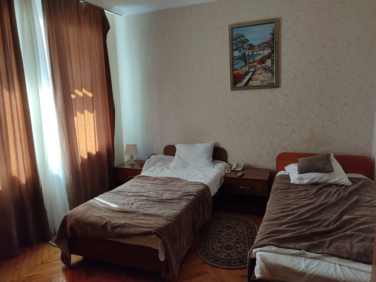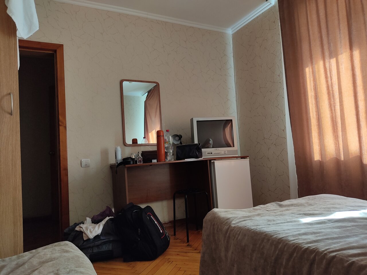 Гостиница немного отличается от фото. Но в целом неплохо. Есть отголоски совдепа такие как скрипучий паркет, кинескопный телевизор и плитка с розами.